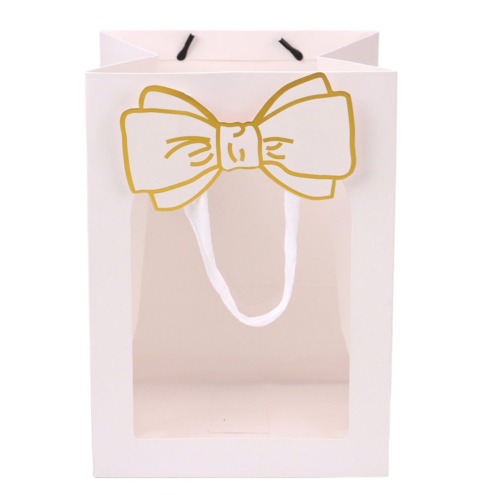 • Design elegant: Combinația dintre culoarea alb, fundița aurie și fereastra transparentă conferă pungilor un aspect sofisticat