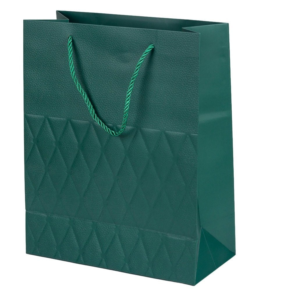 Pungi cadou cu mâner model fundă și romburi aurii 18x23x10cm - verde închis (set 12 buc)