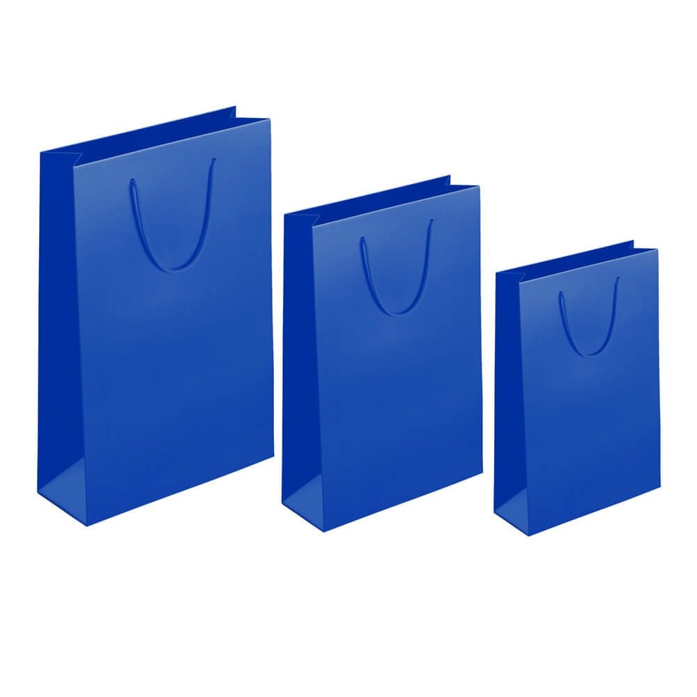 Pungile noastre de cadou albastre, cu un finisaj mat și mânere textile discrete, reprezintă alegerea ideală pentru un ambalaj profesional și sofisticat.