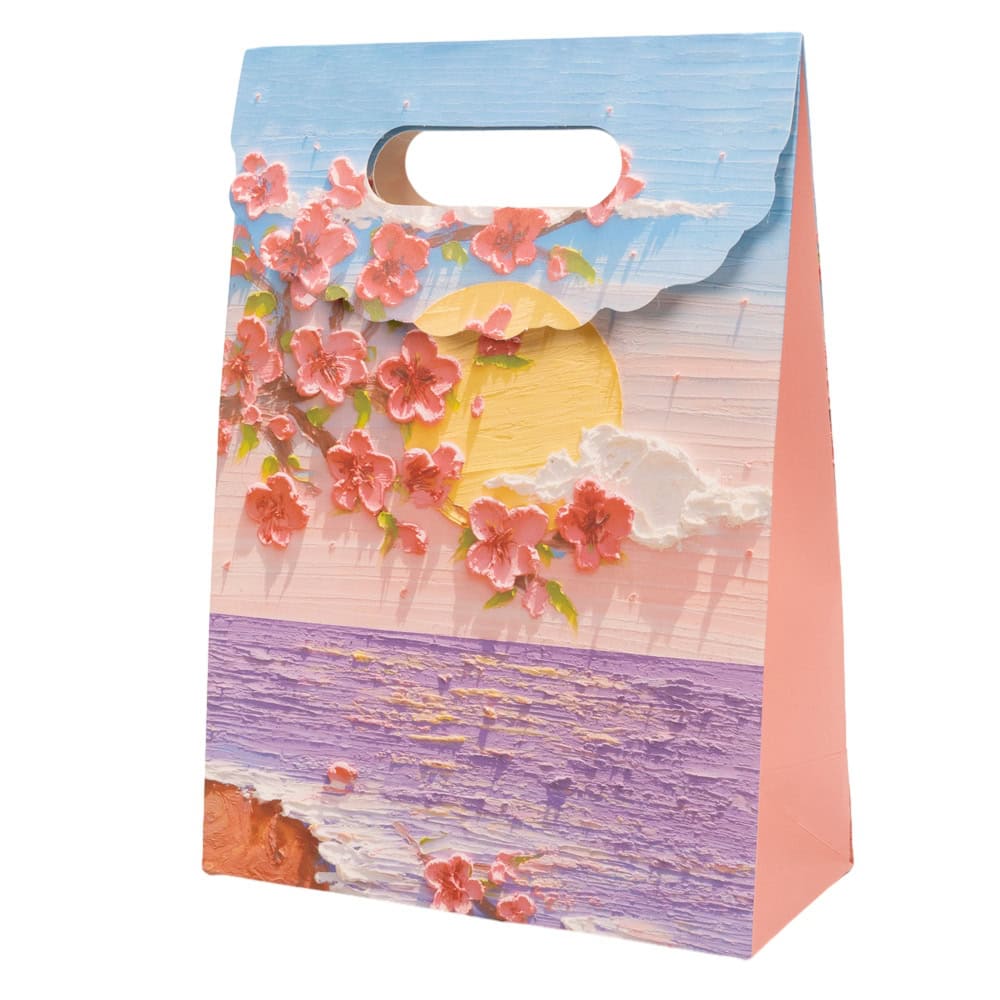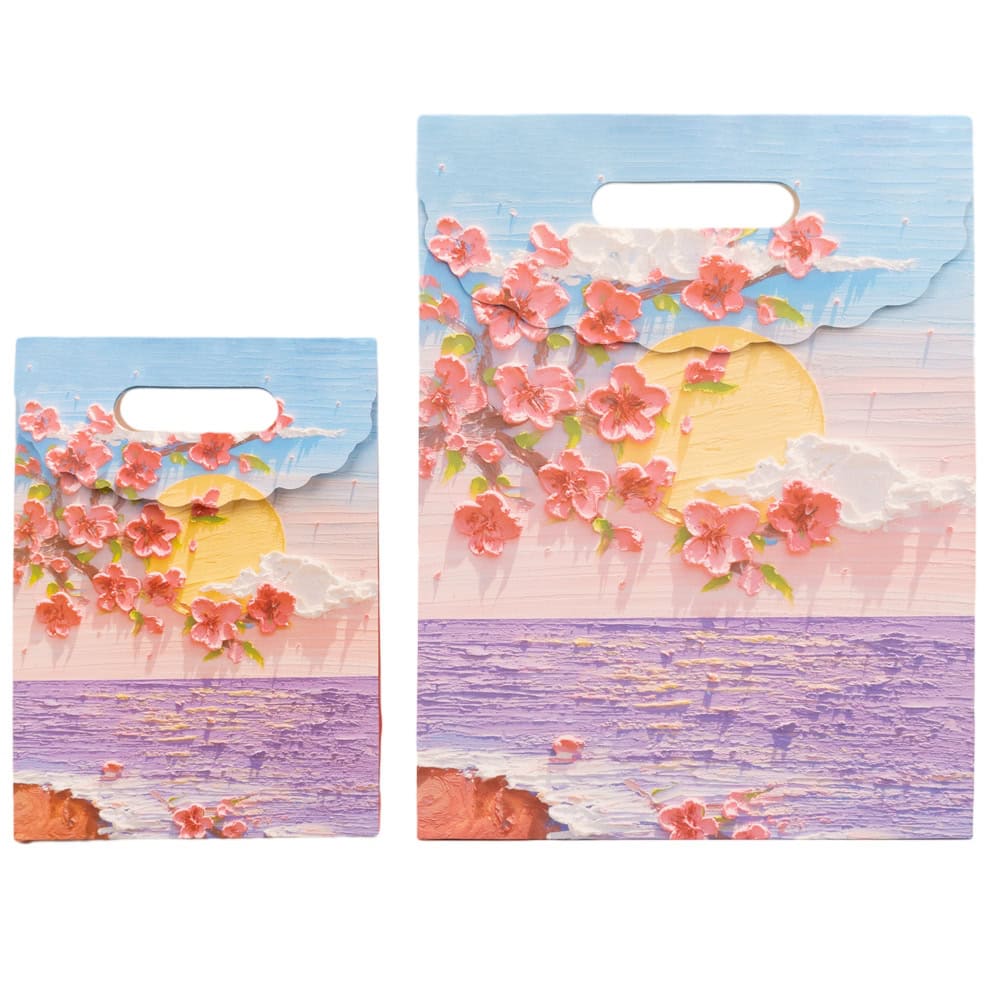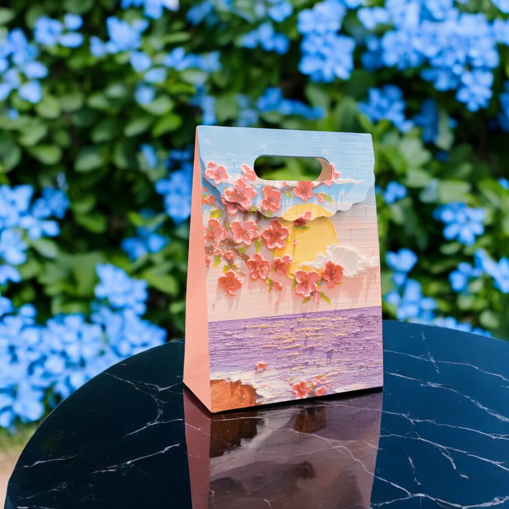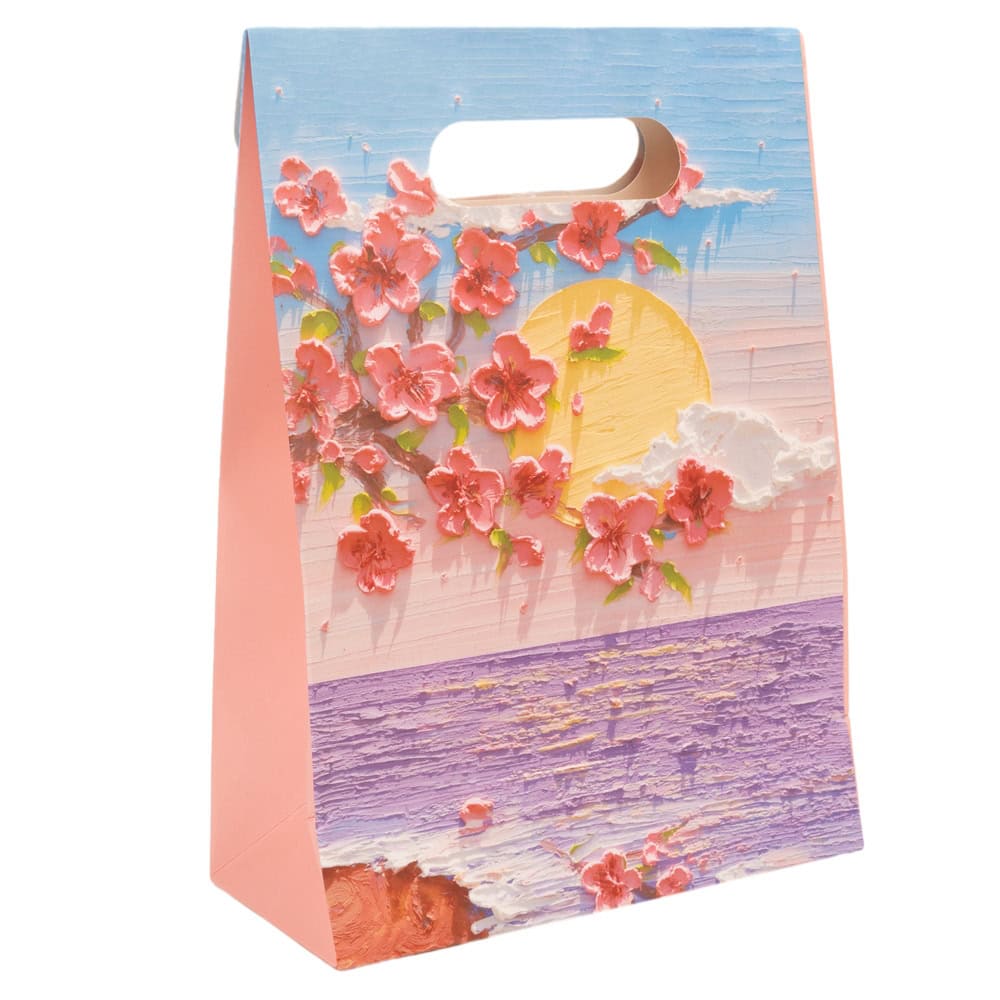 Pungi design pictură 3D cu închidere velcro și mâner - model 4 (set 10 buc), o alegere elegantă și practică pentru cadouri, cu designul său unic creând o imagine tridimensională.