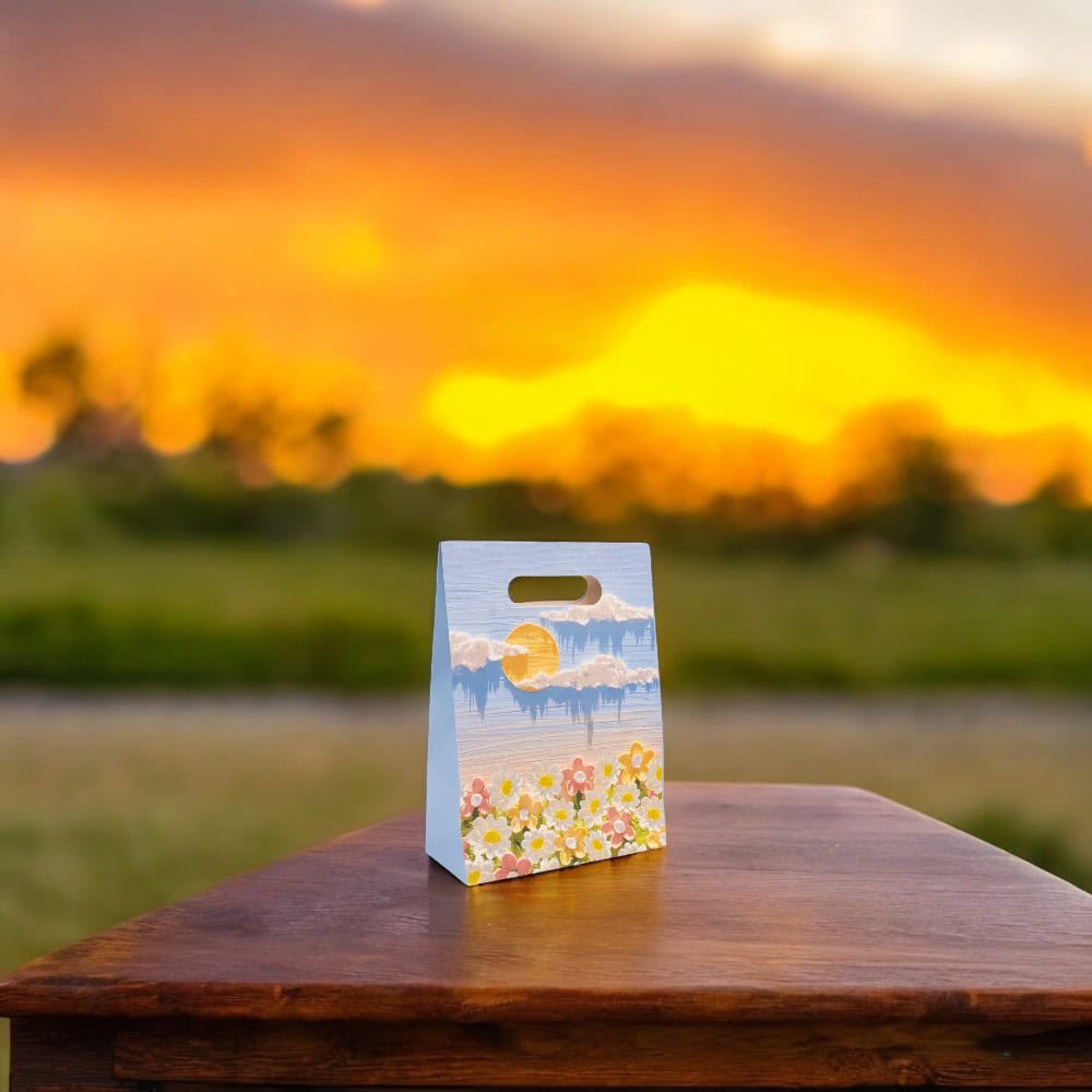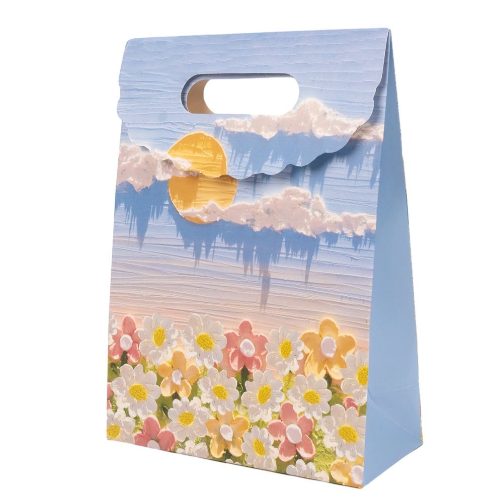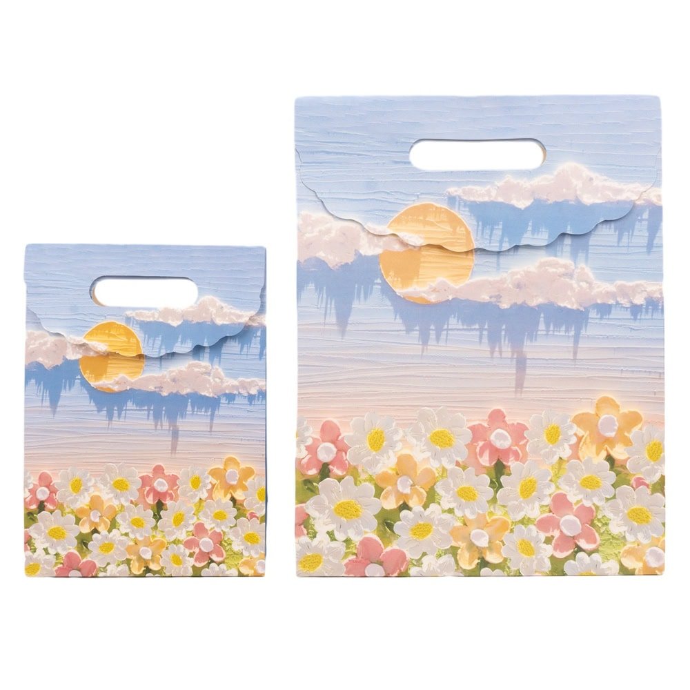 Pungi design pictură 3D cu închidere velcro și mâner - model 5 (set 10 buc), o alegere elegantă și practică pentru cadouri, cu designul său unic creând o imagine tridimensională.