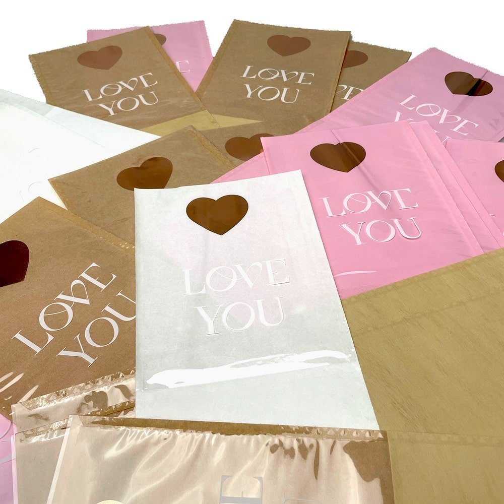 Pungi hârtie pentru flori Love you - alb (set 10 buc) - descoperă farmecul și eleganța cu o expresie rafinată a