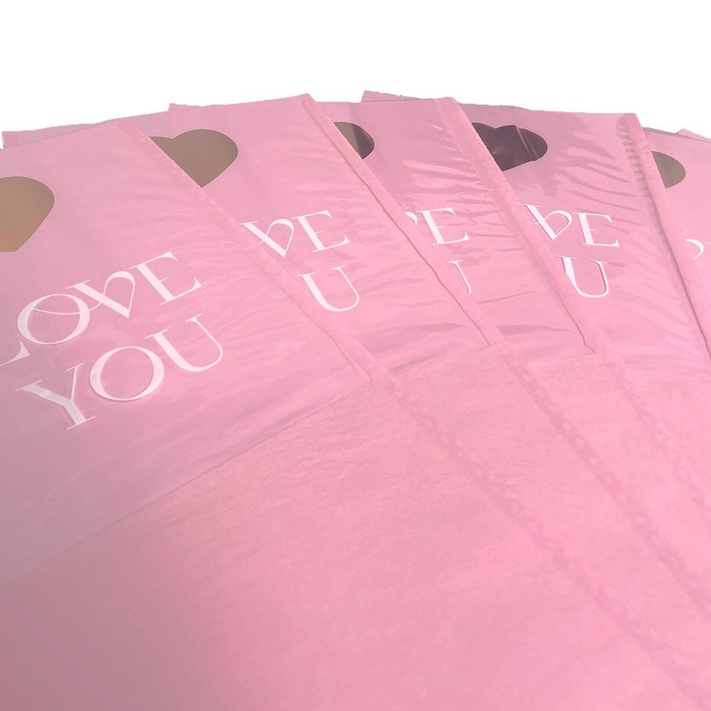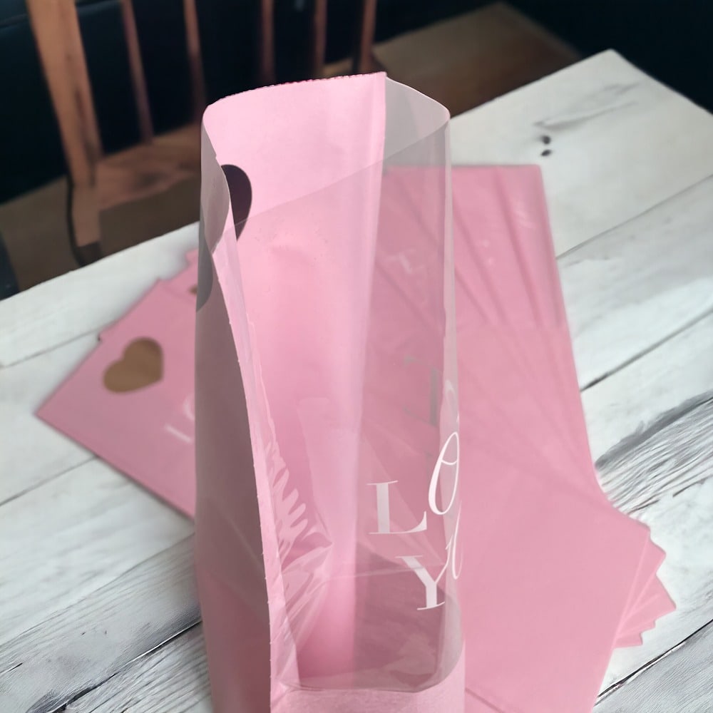Pungi hârtie pentru flori Love you - roz (set 10 buc) - descoperă farmecul și eleganța cu o expresie rafinată a sentimentelor tale.