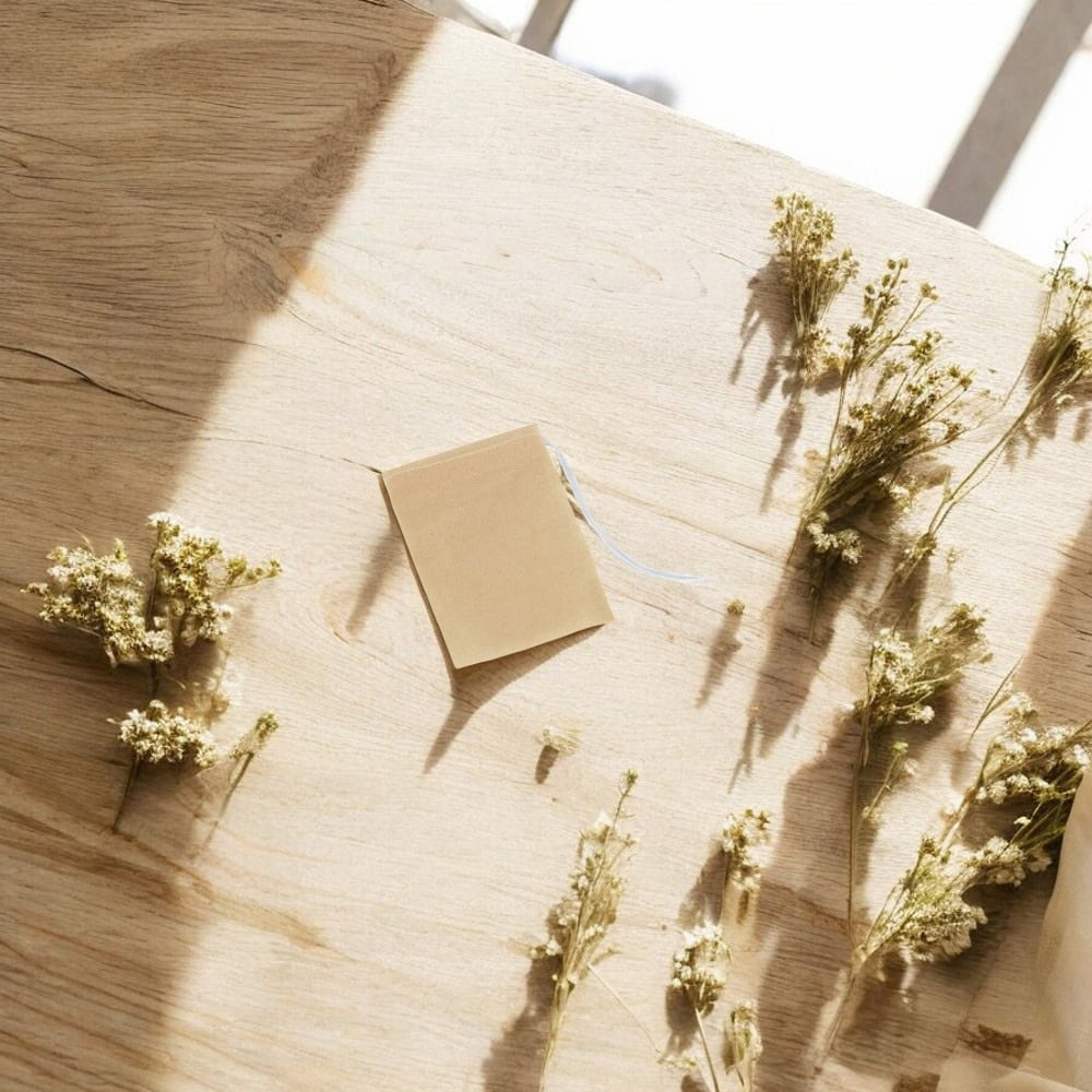Săculeț hârtie mic cu sfoară - beige 5x7cm perfect pentru prepararea ceaiului și a altor infuzii