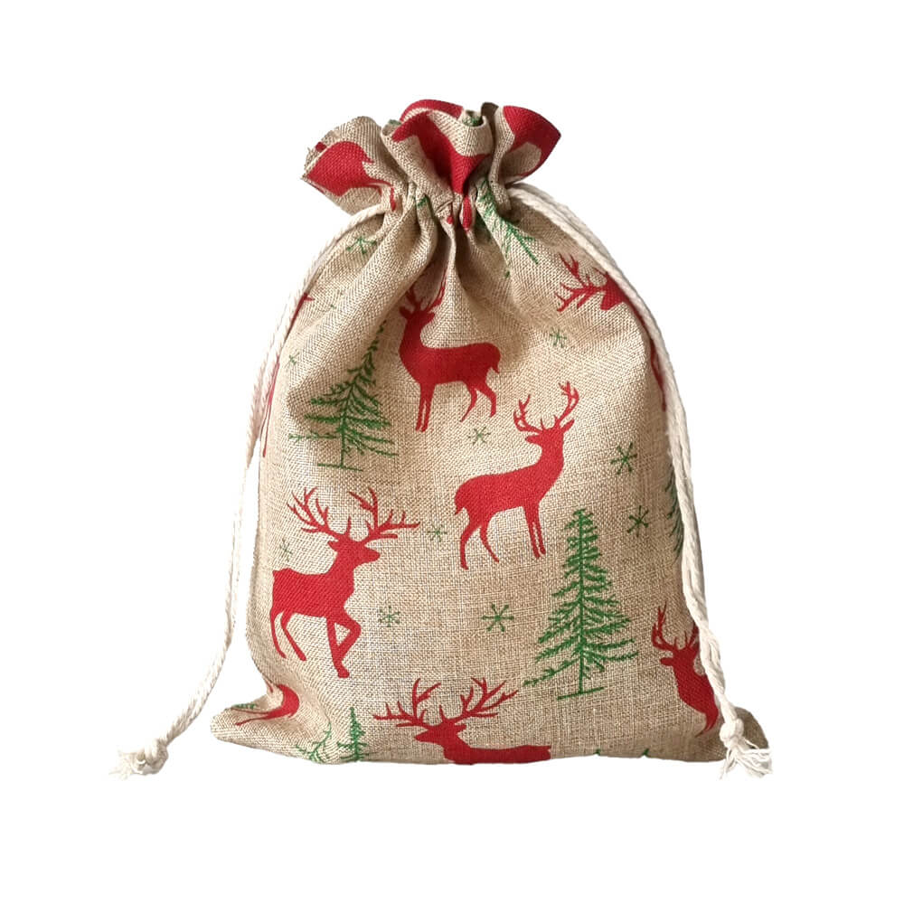 Săculeți textili renii Crăciunului 15x20cm - beige