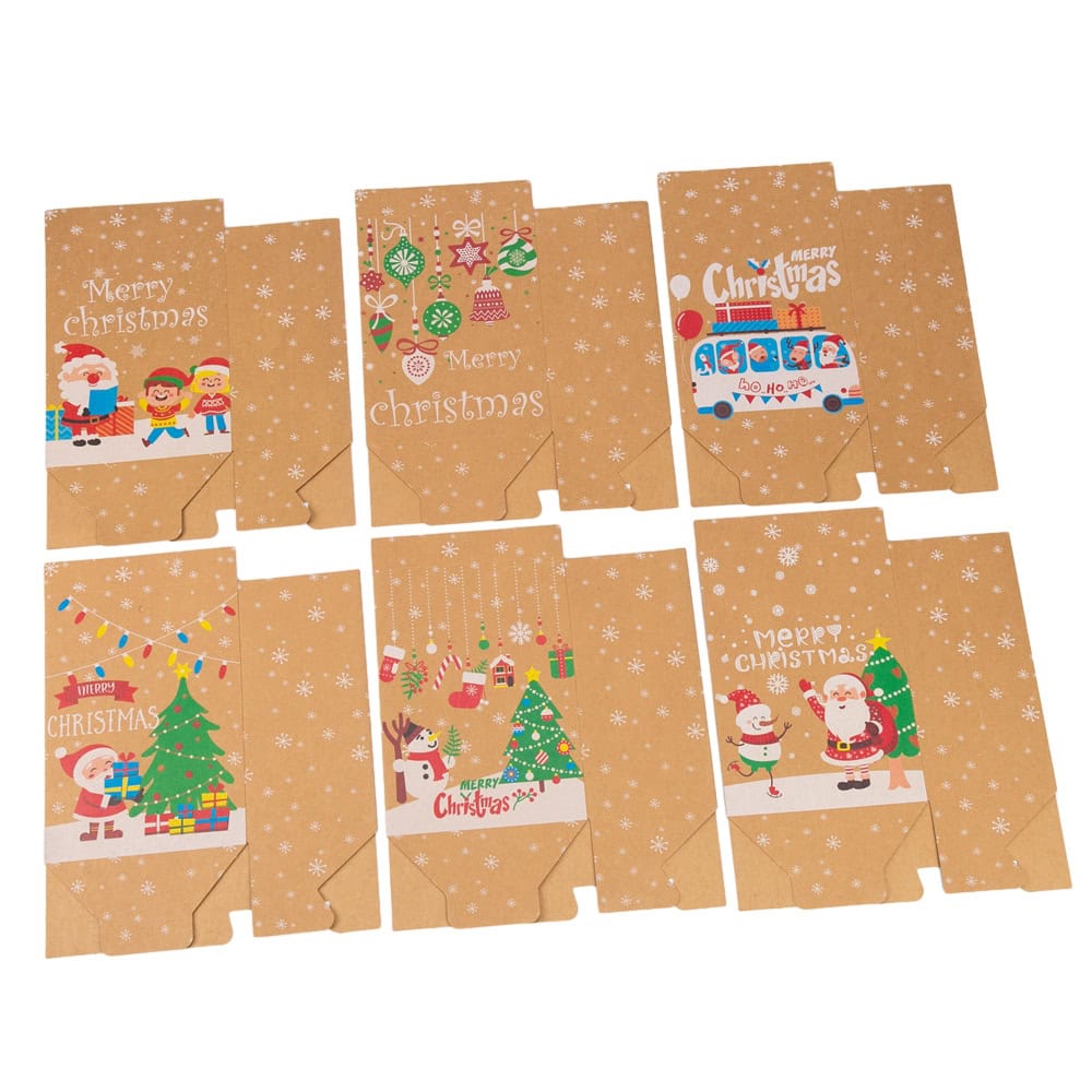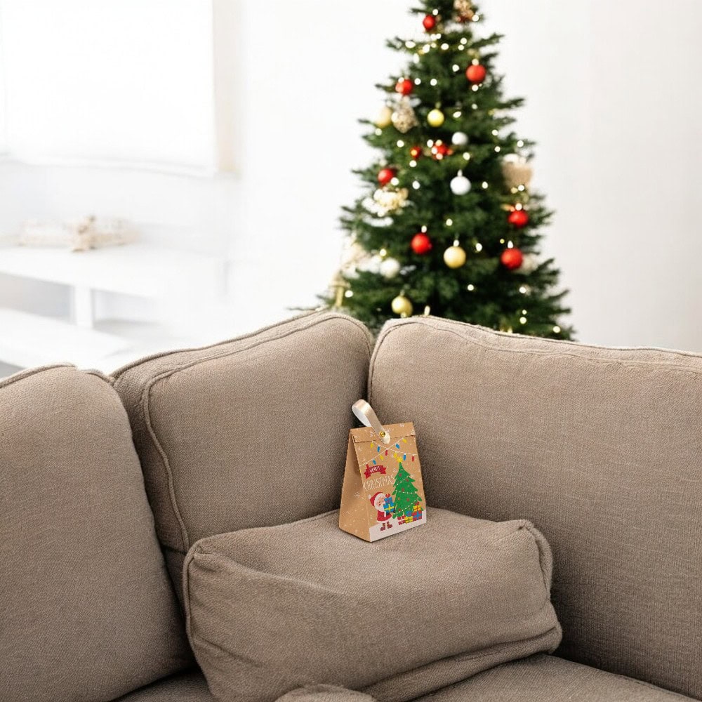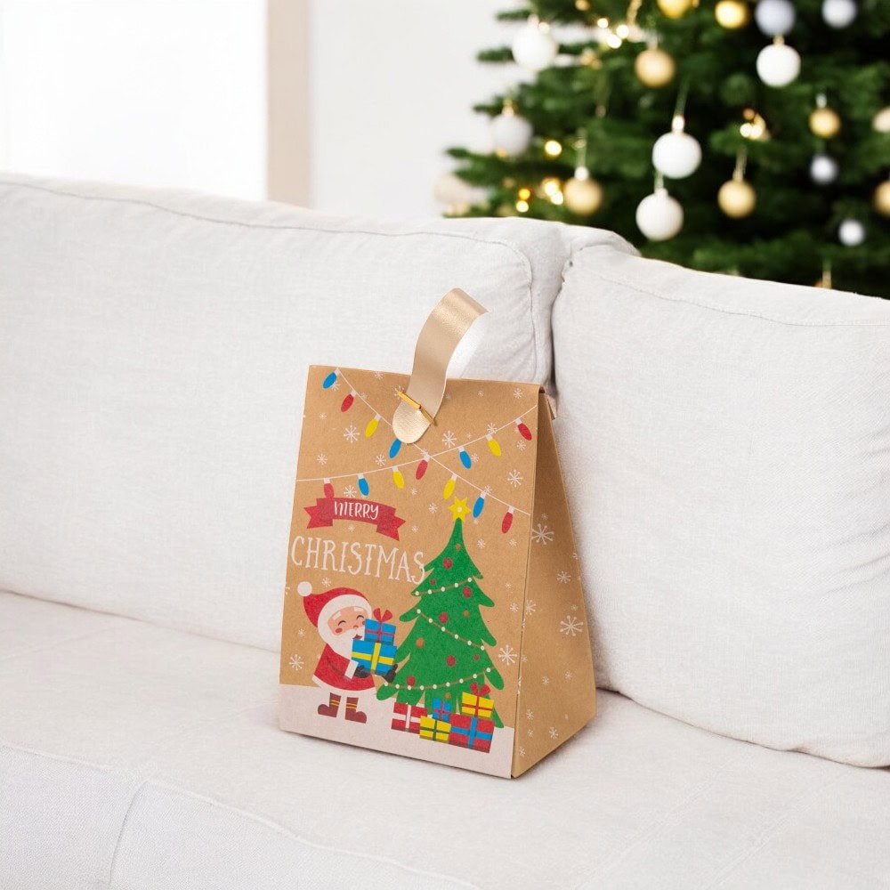 Set 6 pungi modele diferite de Crăciun cu mâner textil - kraft, ideal pentru ambalarea cadourilor în perioada sărbătorilor. Fiecare pungă are un design unic care aduce un plus de festivitate momentului cadourilor, oferind o soluție simplă, dar elegantă de ambalare.