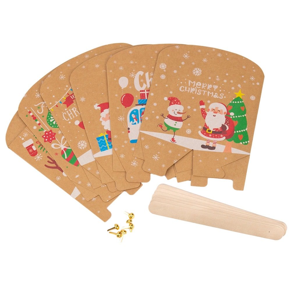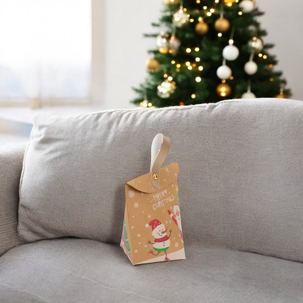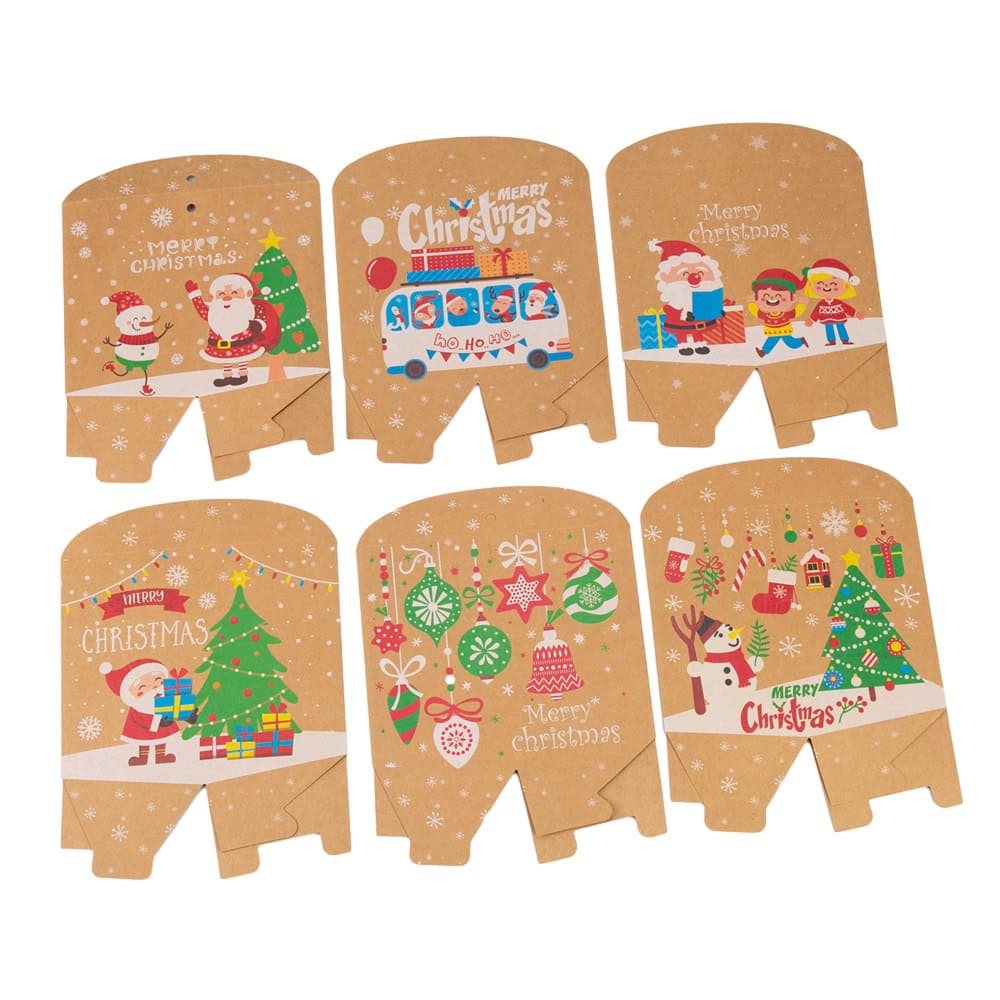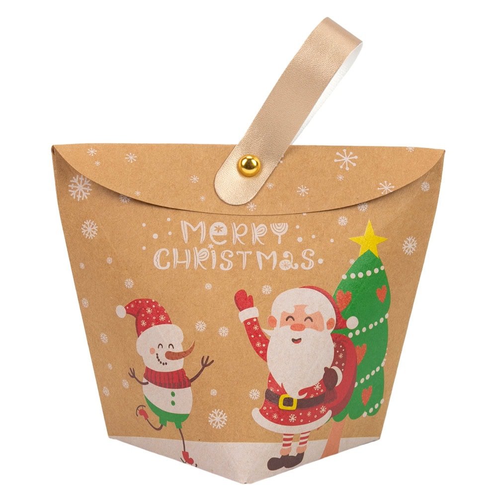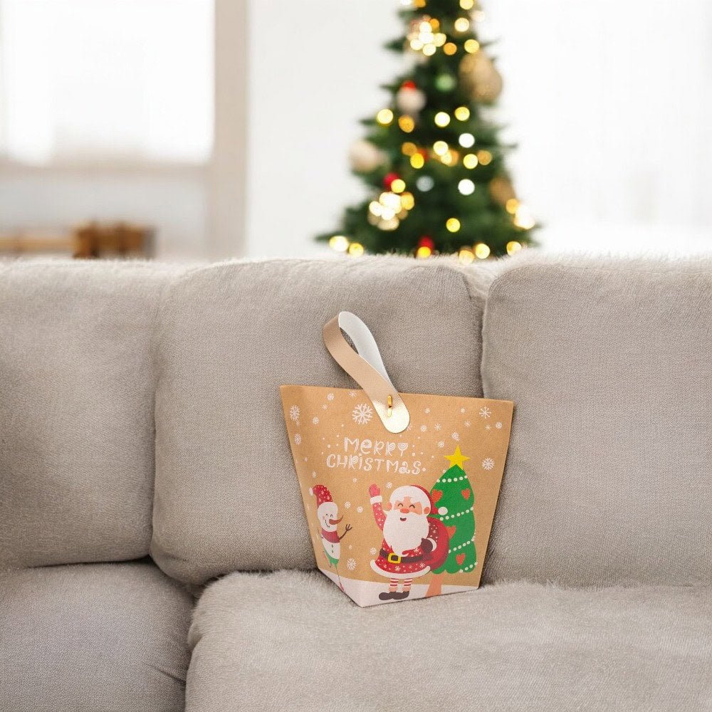 Set 6 pungi trapez modele diferite de Crăciun cu mâner textil - kraft
