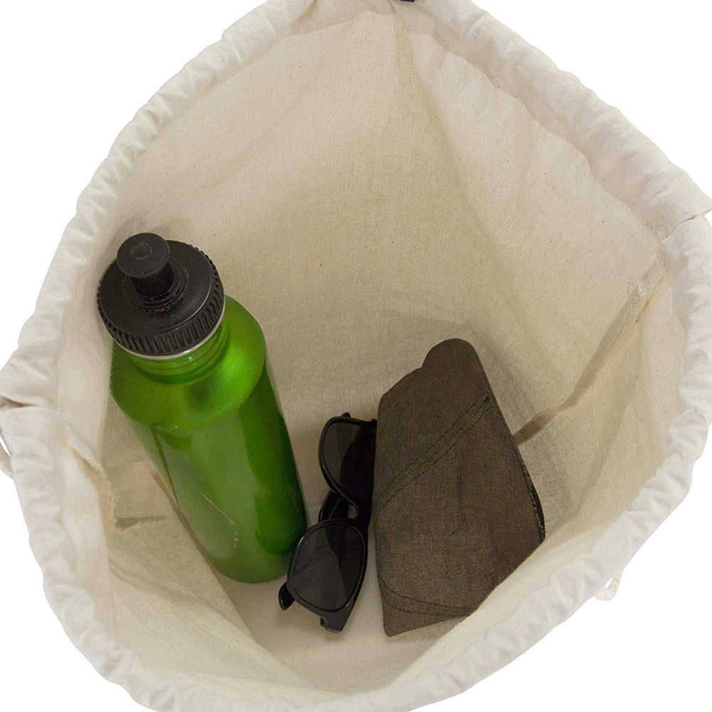 - Rucsac din material tip canvas. Manerele sunt din franghie textila.