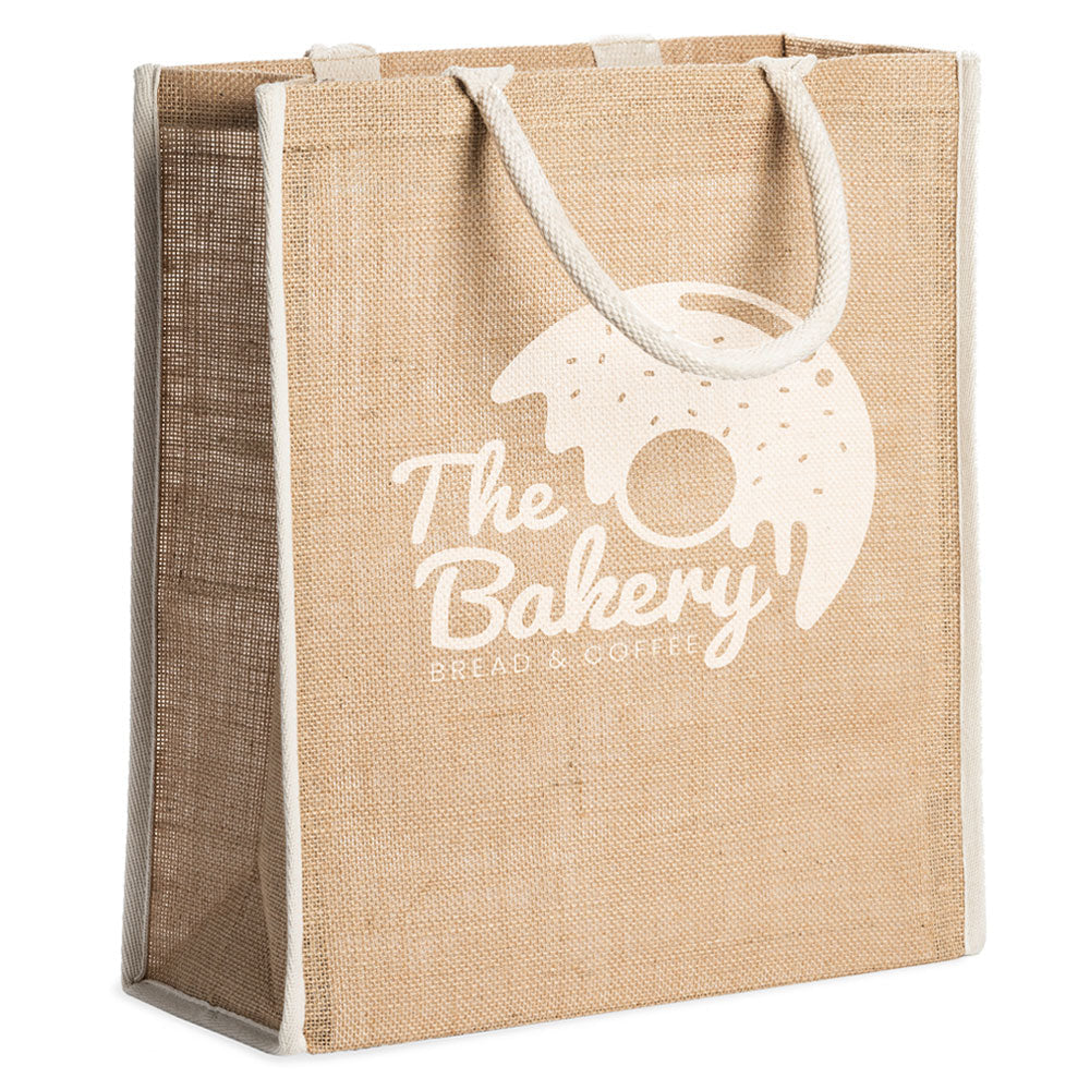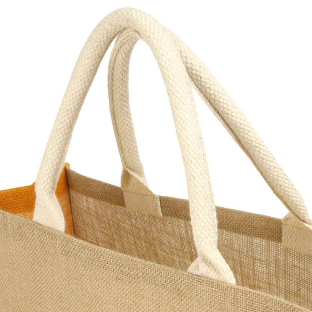 • Fabricata din iuta cu margini si manere de bumbac