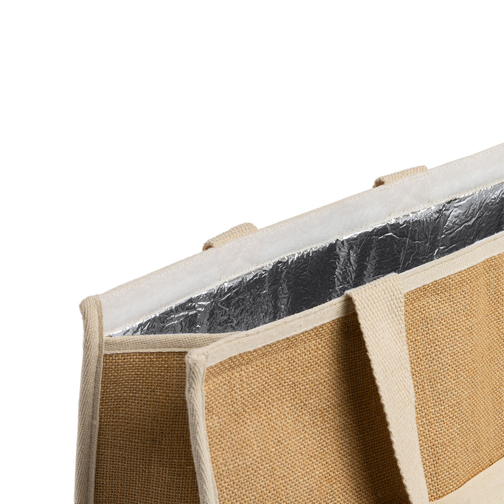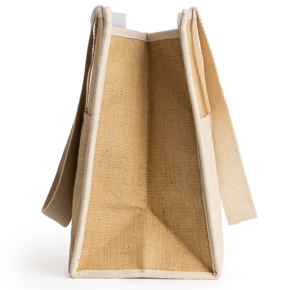 • Sacosa realizata din materiale ecologice, fiind compusa din iuta si bumbac