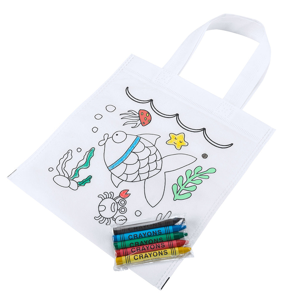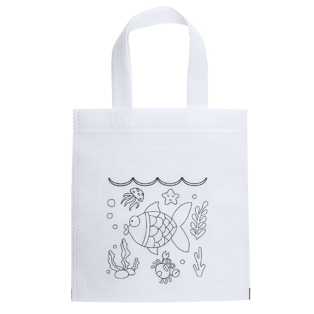 • Sacosa are model cu animale marine imprimat ce poate fi colorat cu creioane colorate