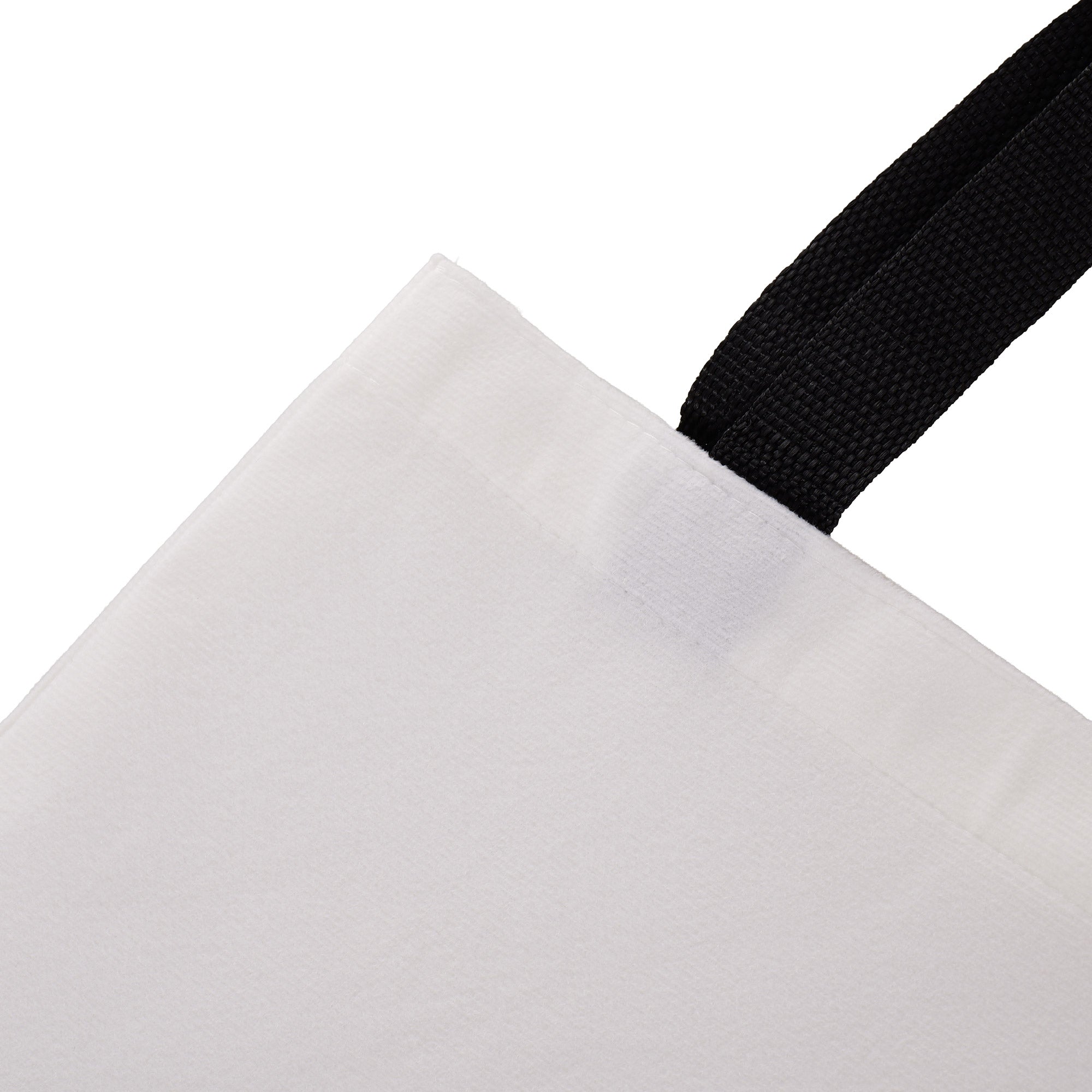 Sacoșă realizată din material textil pufos tip fleece, cu textură moale plăcută la atingere. Suprafața albă este ideală pentru personalizare prin sublimare.