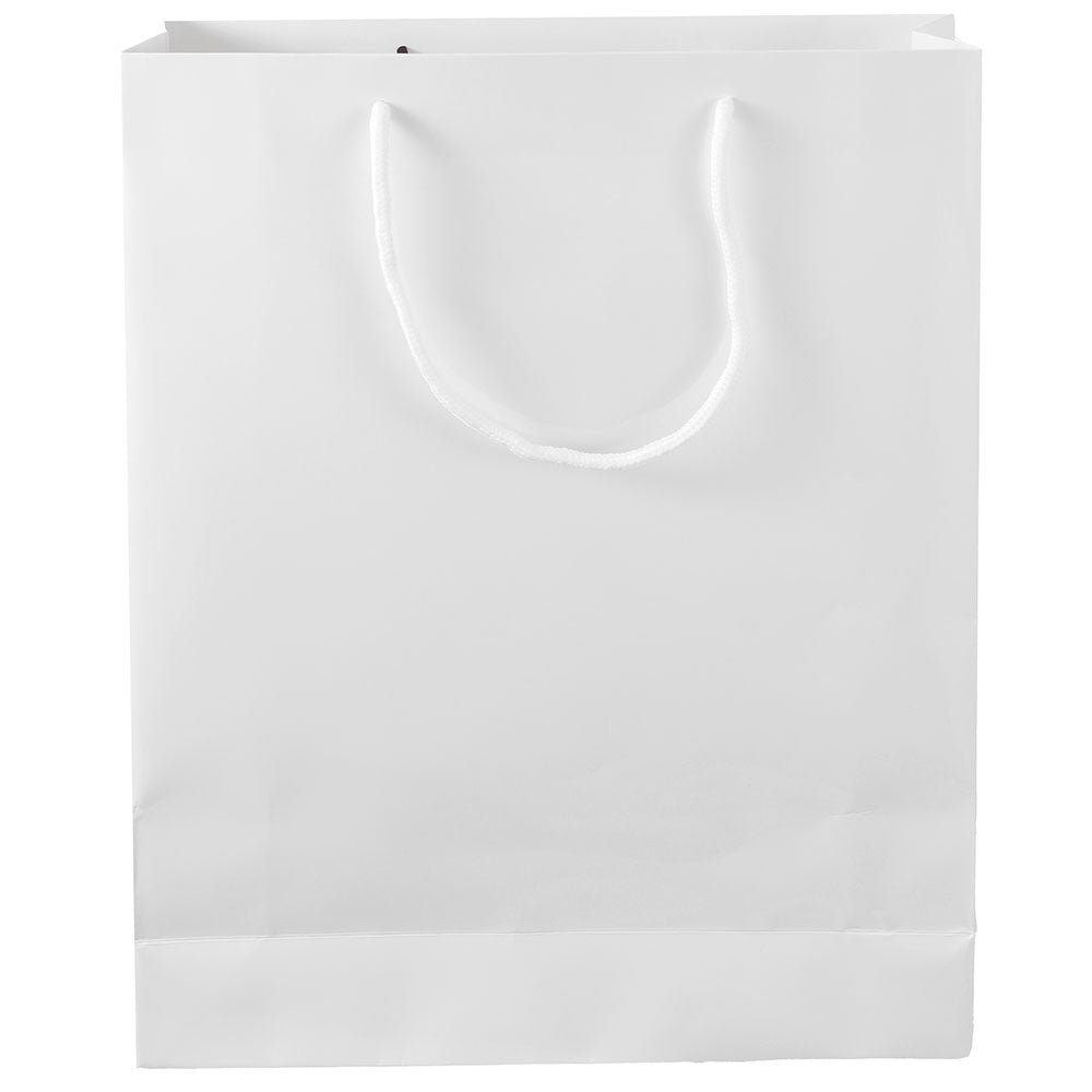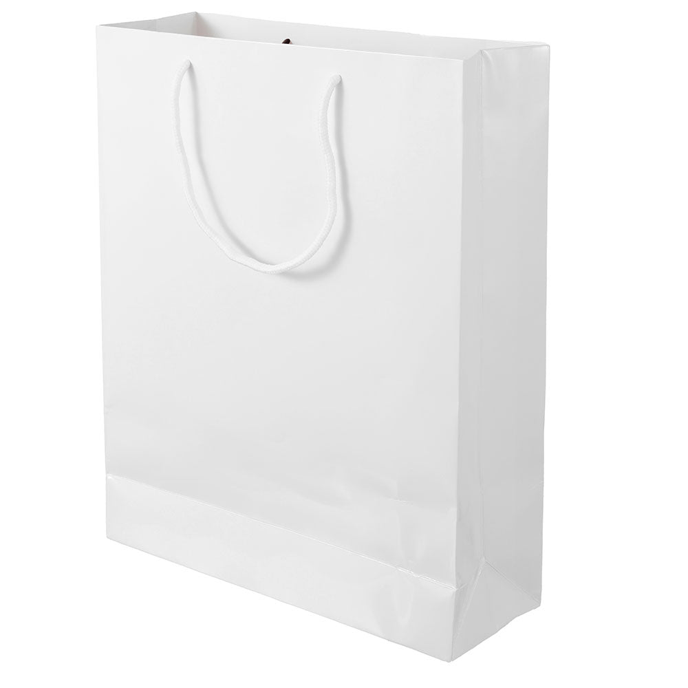 • Fabricata din carton subtire cu manere de sfoara. Suprafata exterioara este alba, cu un finisaj lucios sublimabil, iar interiorul este alb mat.