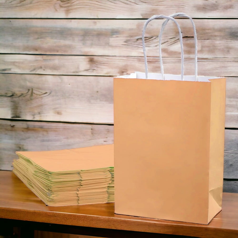 Sacoșe hârtie cu mâner răsucit - kraft deschis, elegante și practice, ideale pentru cumpărături sau cadouri, cu design atrăgător, rezistență și o alternativă sustenabilă la sacoșele de plastic.