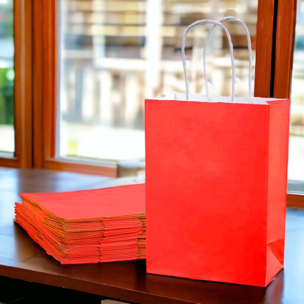 Sacoșe hârtie cu mâner răsucit - Roșu (set 12 buc)