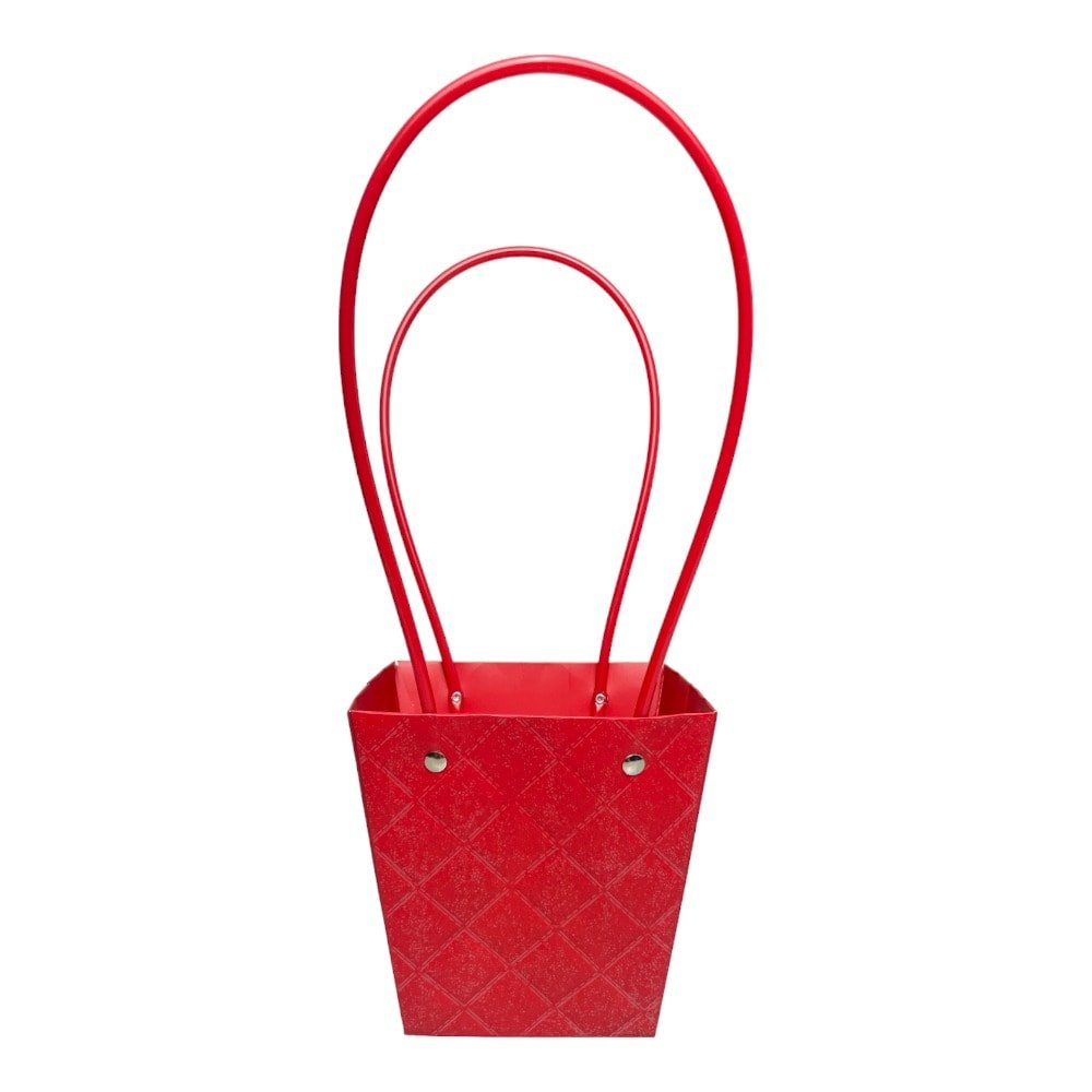 Sacoșe trapez model romburi cu mâner - roșu (set 10 buc)