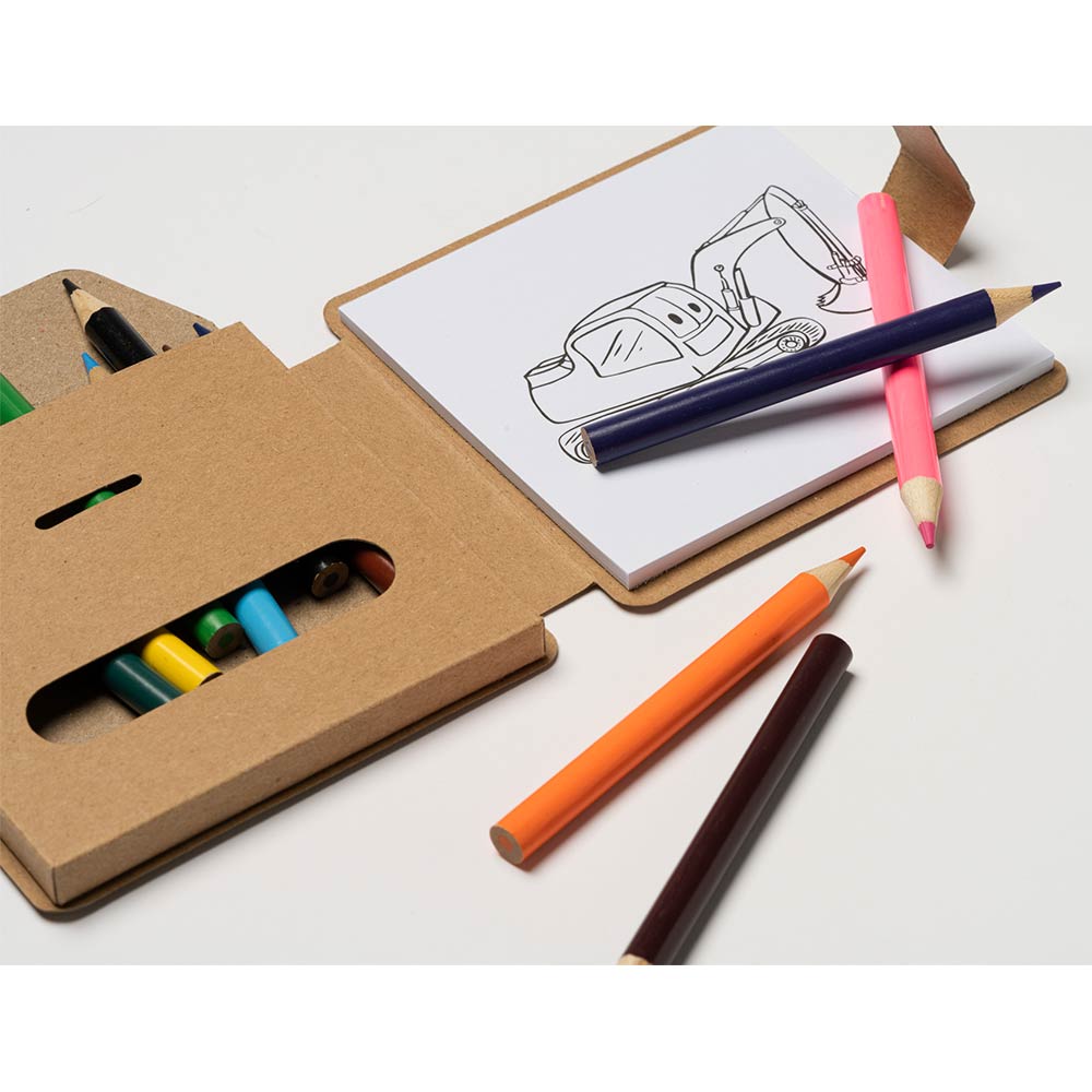 - Set pentru desenat compus din creioane colorate ascutite si carnetel cu desene