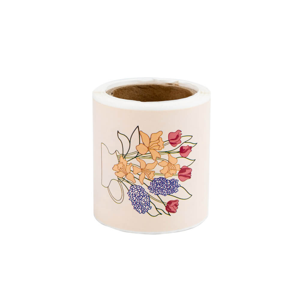 Rolă 50 stickere lungi cu flori - model 1, bogat ornamentate cu motive florale delicate.