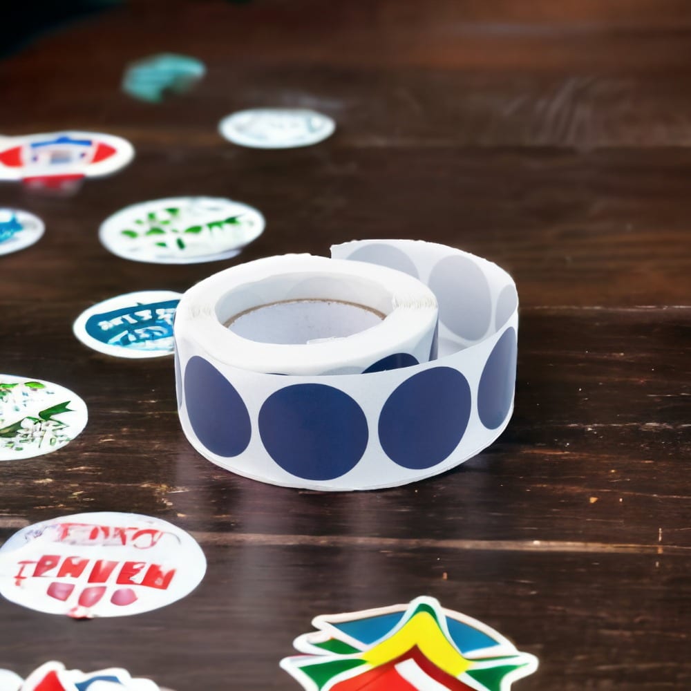 Rolă 500 stickere blank rotunde 2.5cm - albastru perfecte pentru personalizarea cadourilor și produselor handmade