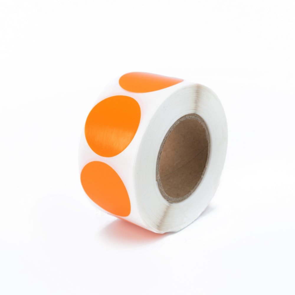 Rolă 500 stickere blank rotunde 2.5cm - portocaliu perfecte pentru personalizarea cadourilor și produselor handmade
