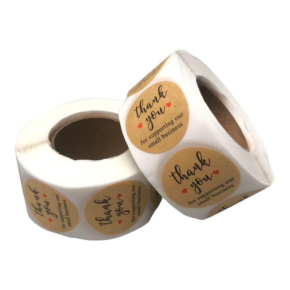 Rolă 500 stickere rotunde Thank You aduce un element de recunoștință și un aspect rustic oricărui proiect sau ambalaj. Aceste stickere decorative sunt perfecte pentru a exprima mulțumirea și a adăuga un detaliu special.