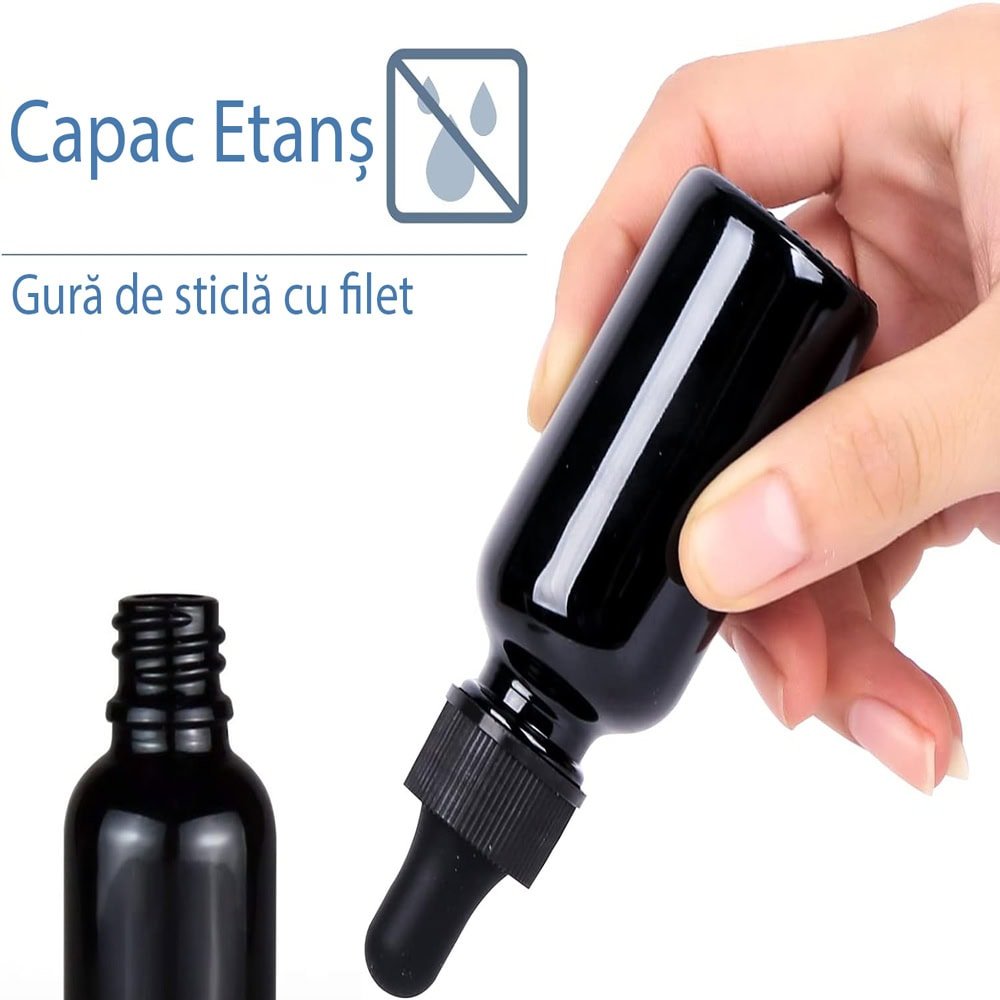 • Sticlă Neagră Opacă pentru Protecție Absolută: Spre deosebire de sticla colorată, negrul opac blochează 100% din spectrul de lumină vizibilă și UV. Este protecția supremă pentru formulele extrem de sensibile, asigurând o stabilitate și o potență maximă pe termen lung.