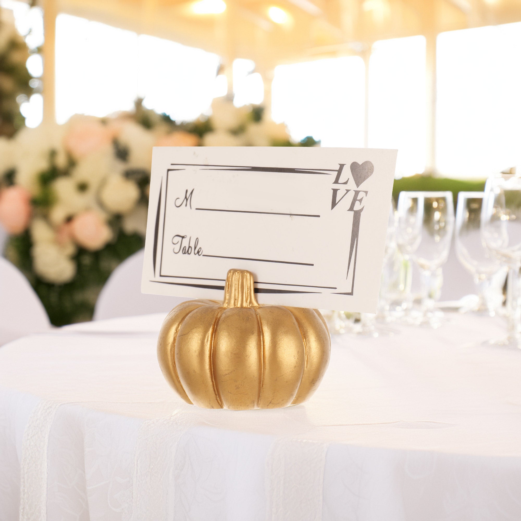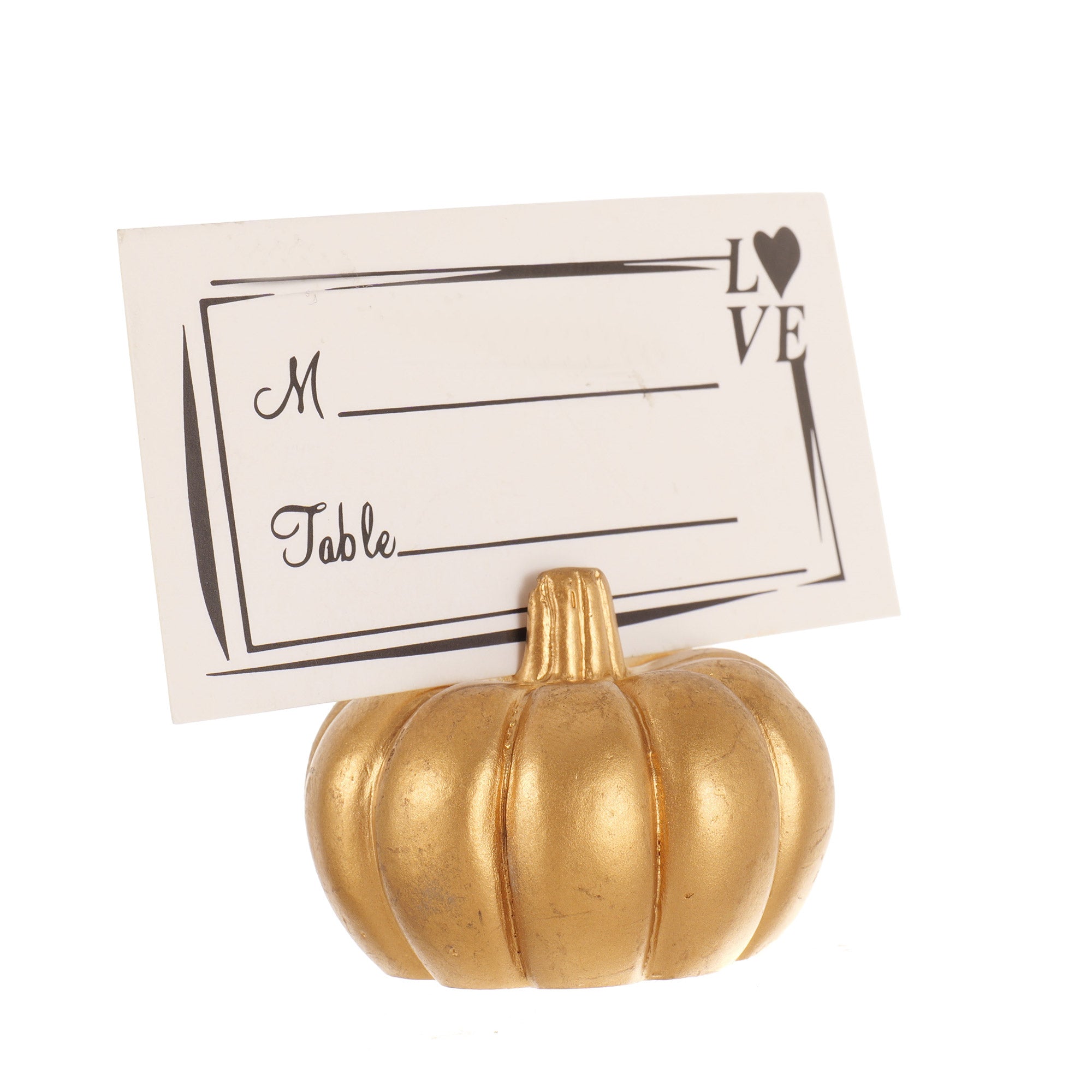 Placeholder metalic in forma de dovleac este o alegere practica pentru organizarea meselor la evenimente. Baza stabila permite sustinerea cartonului cu nume, nr de masa sau a altor mesaje. Se integreaza usor in orice decor, de la evenimente elegante pana la mese casual.