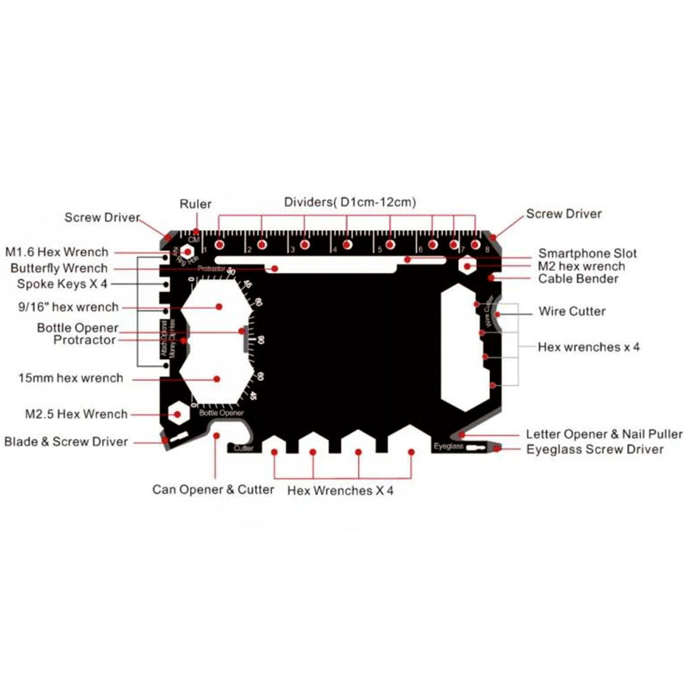 Unealta multifunctionala cu 23 de functii fabricata din otel inoxidabil
