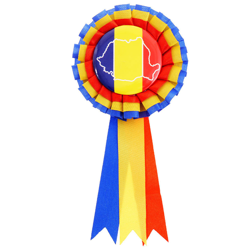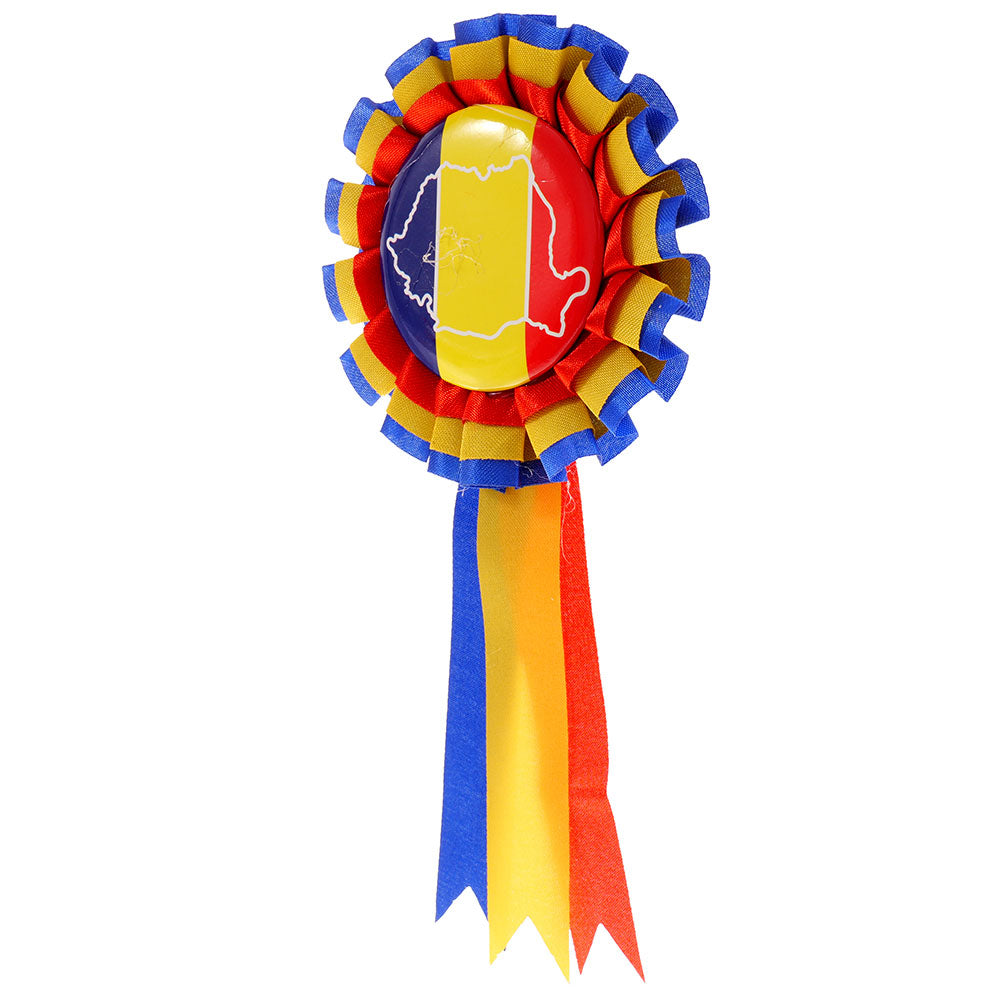 • Cocarda in culorile Romaniei cu panglici satinate tricolore