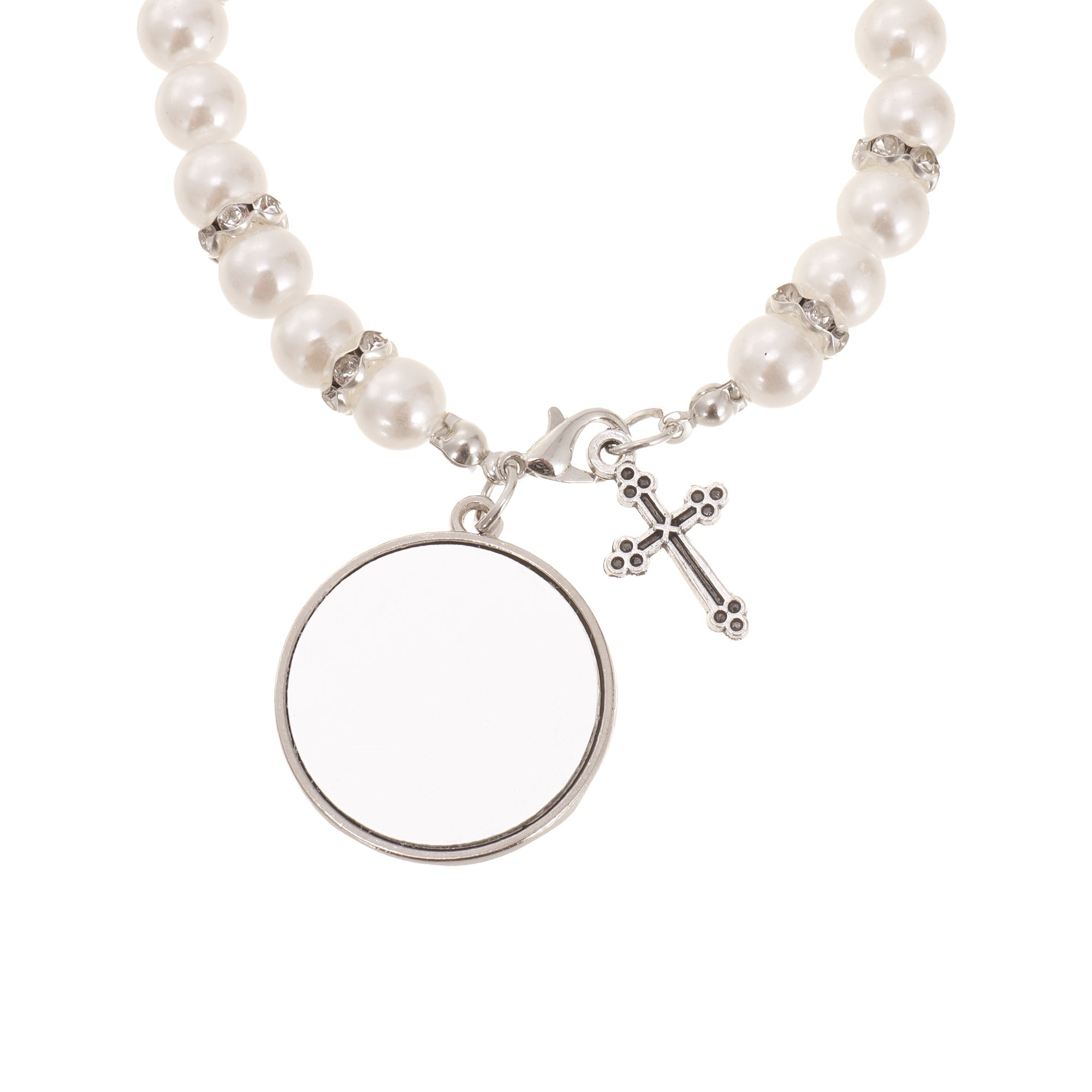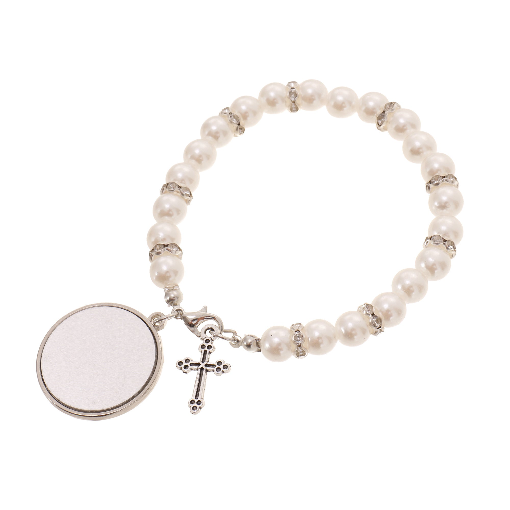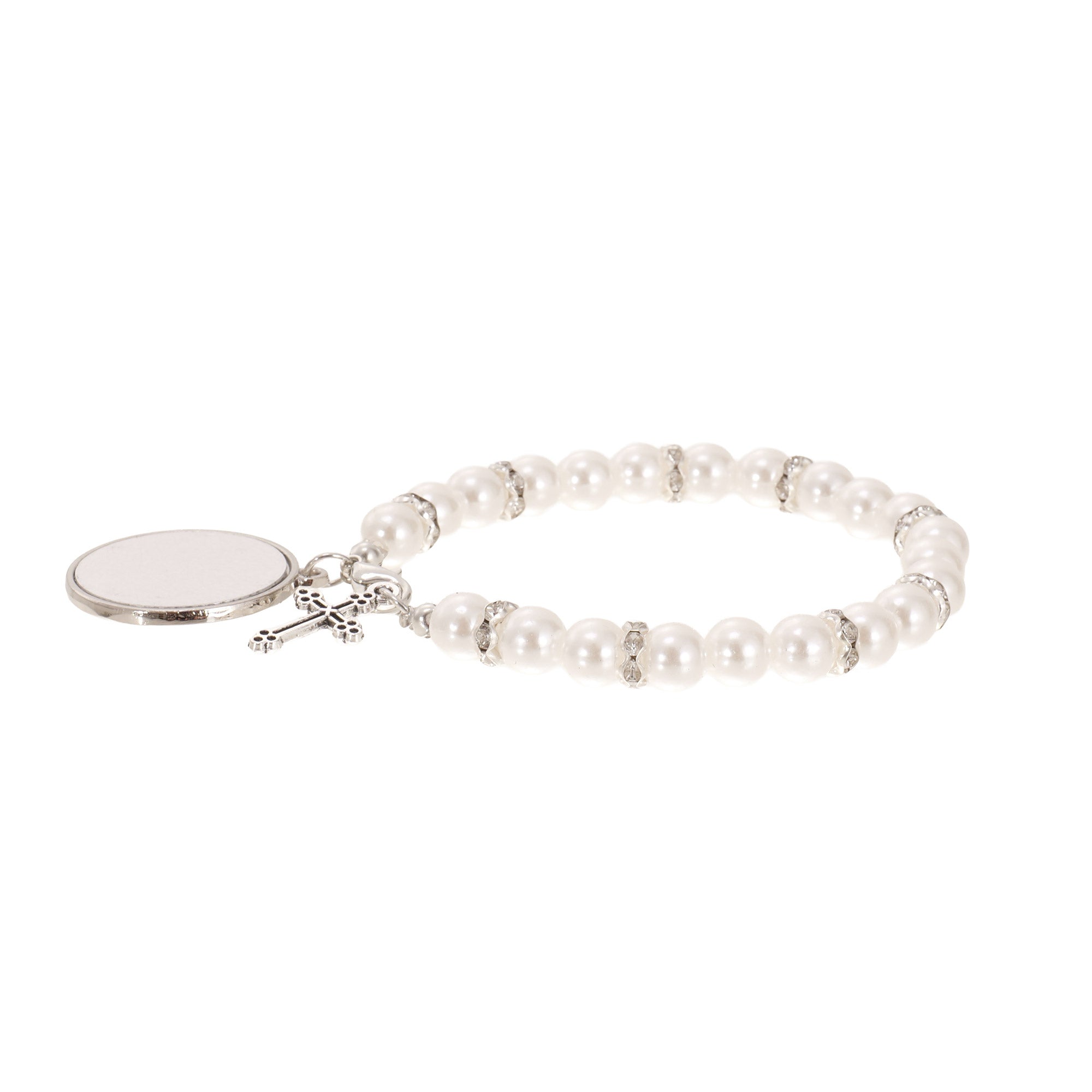 Bratara cu margele albe si cruciulita - sublimabila