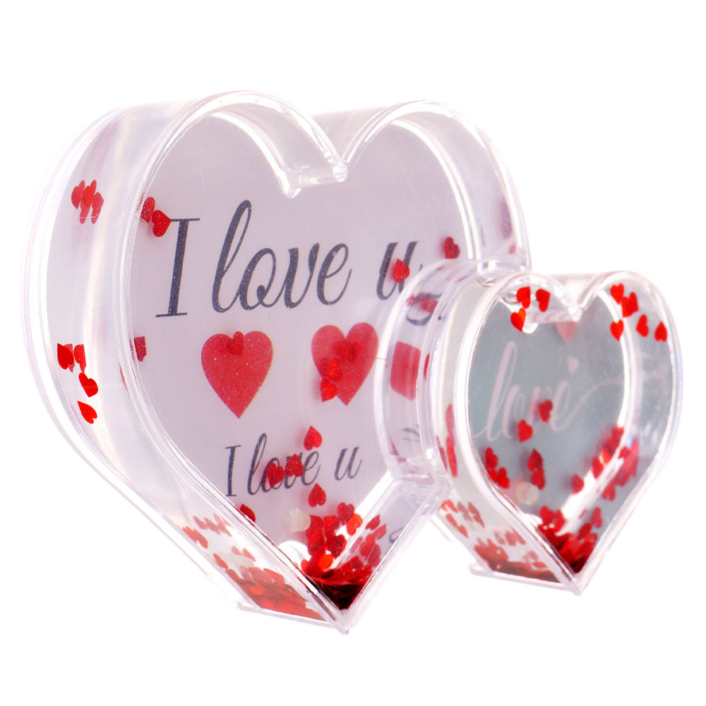 • Globul este umplut cu apa in care plutesc inimioare rosii