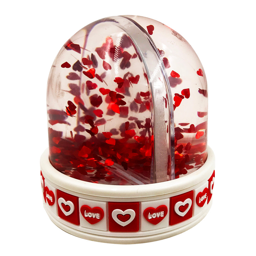 • Globul este umplut cu apa in care plutesc inimioare lucioase de culoare rosie.