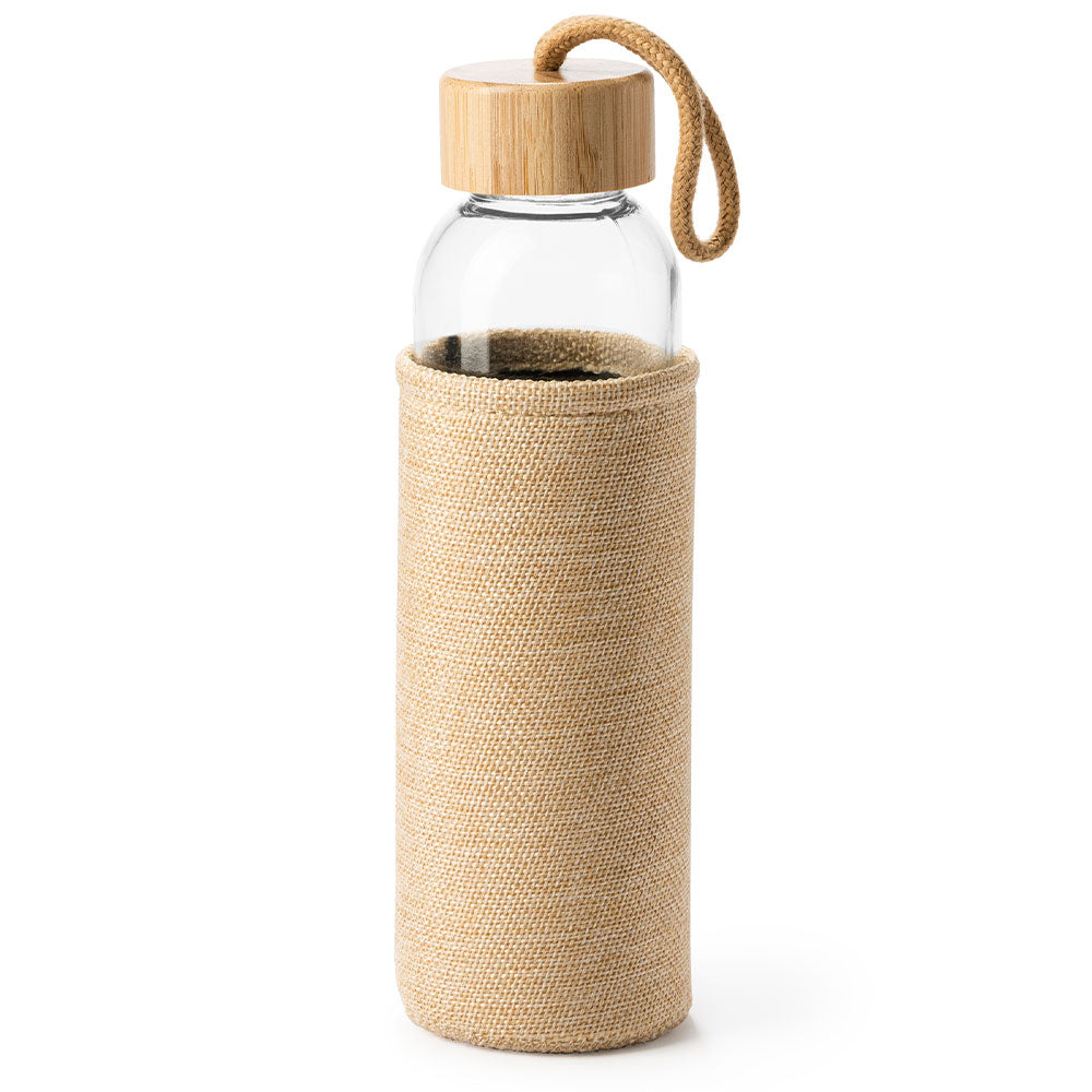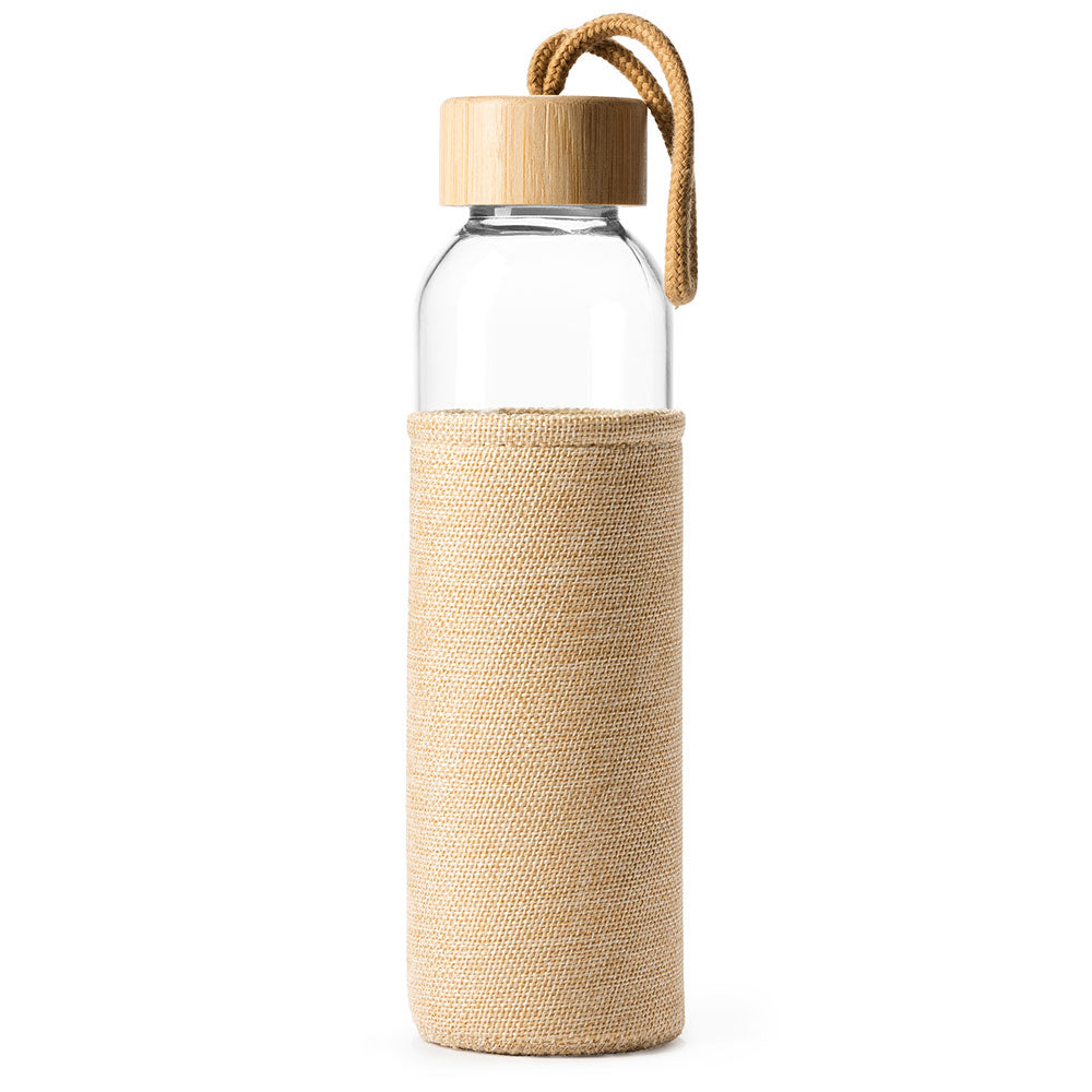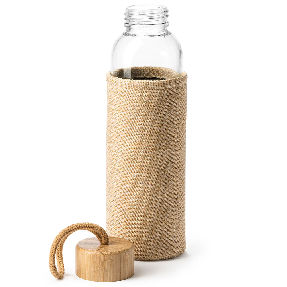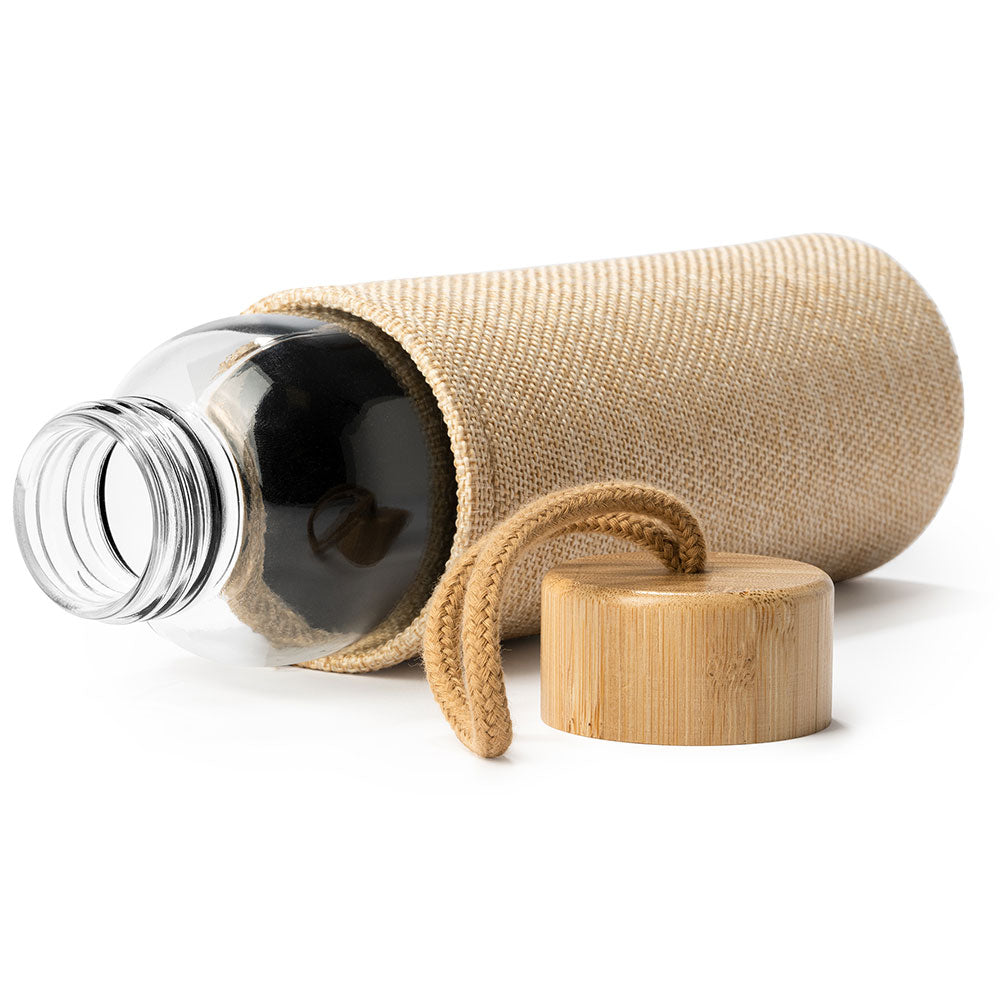 Bidon din sticla cu capac de lemn TRILBY + husa iuta