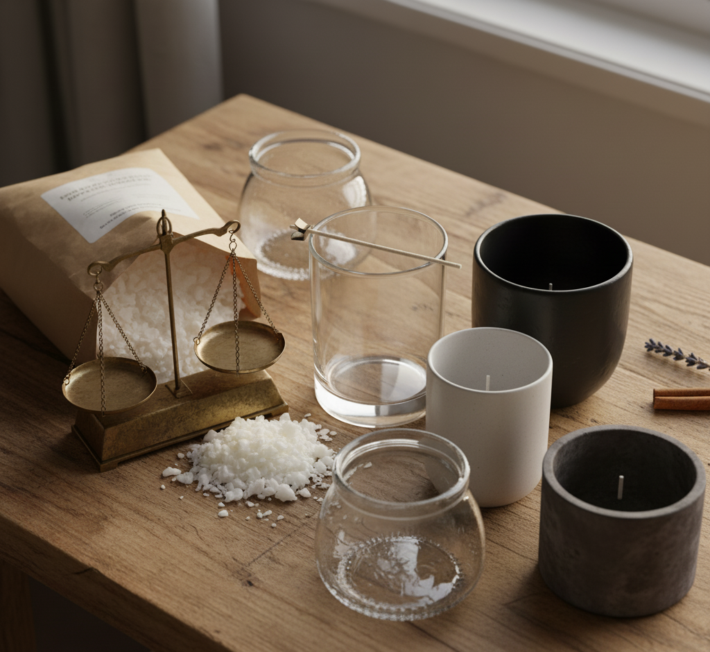 Essential Oils: Use high-quality oils specifically designed for candles. Don't add too much, as too much can affect the burn. The rule of thumb is to add the fragrance just before pouring the wax into the container, when it has started to cool a bit.