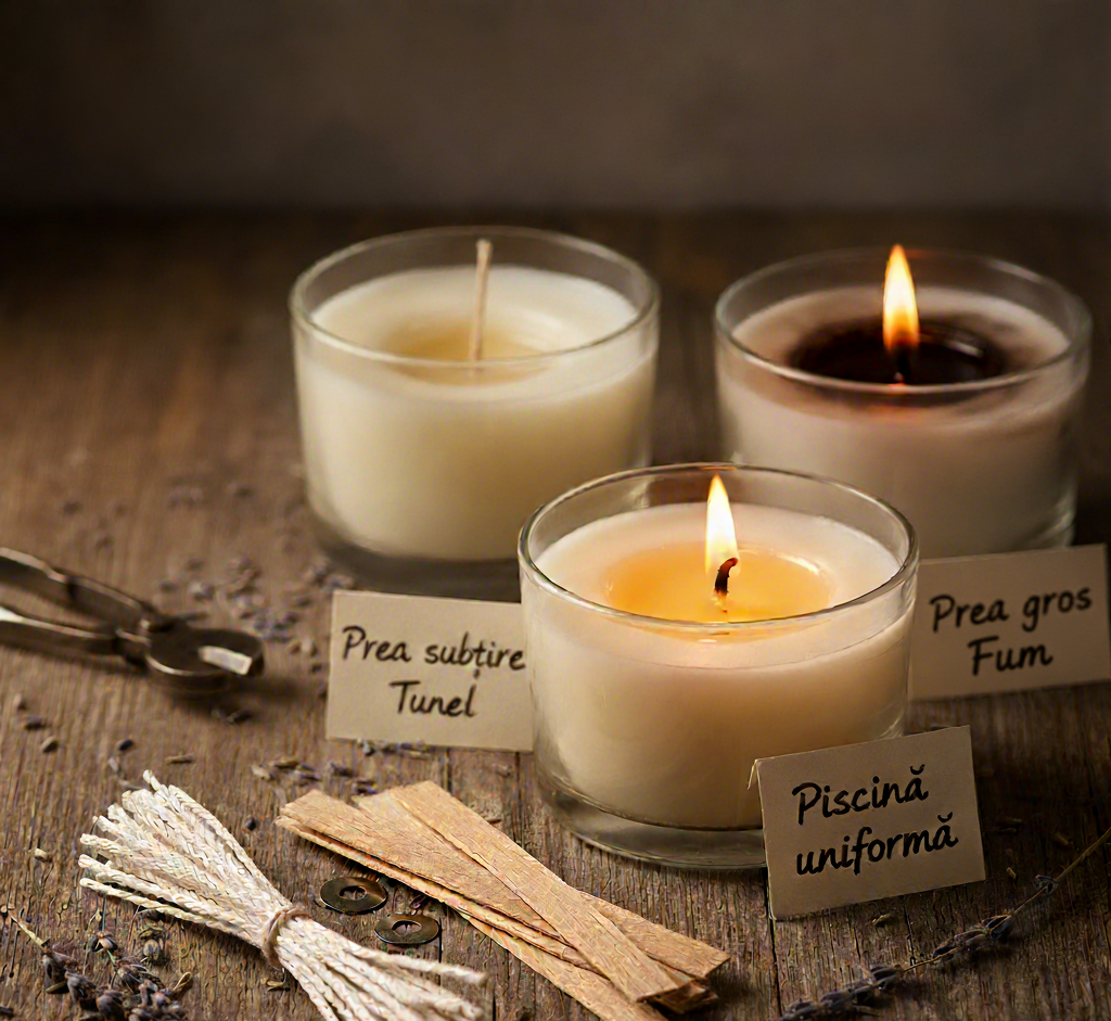 The wick is the most important detail, often overlooked. A wrong wick will cause the candle to burn unevenly or go out.