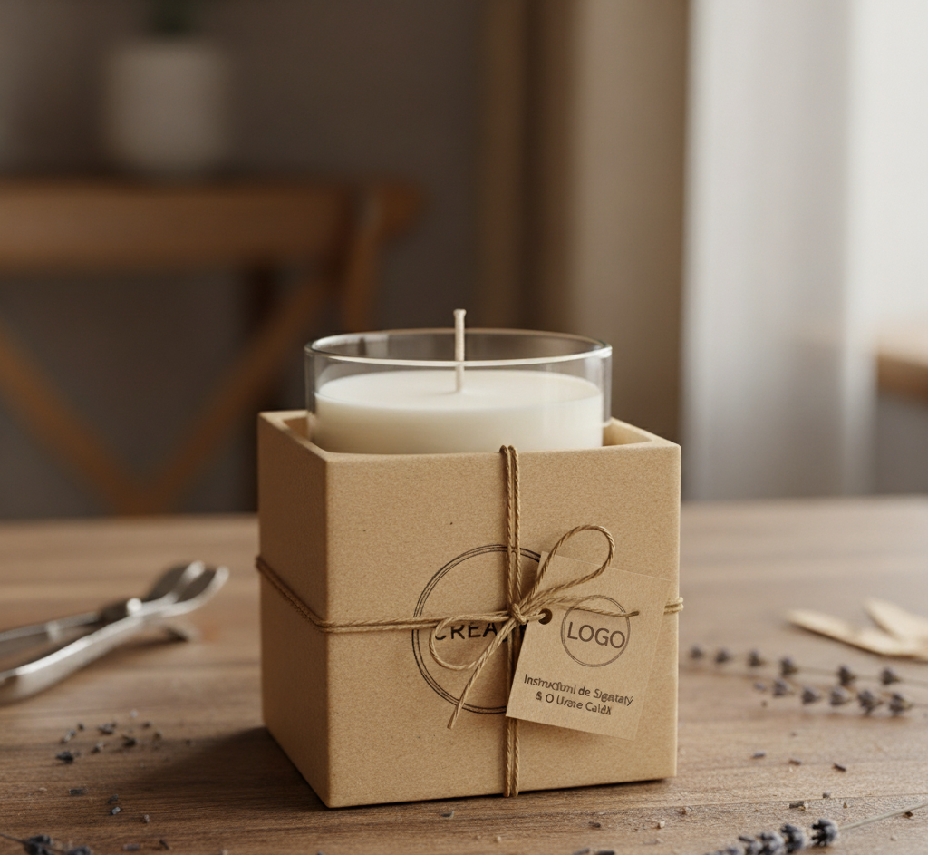 Final Packaging: Your candle deserves a custom package! Use small boxes, personalized with your LOGO , and tie a bow made of natural twine or a simple ribbon. A Createur sticker with safety instructions or a wish completes the experience.