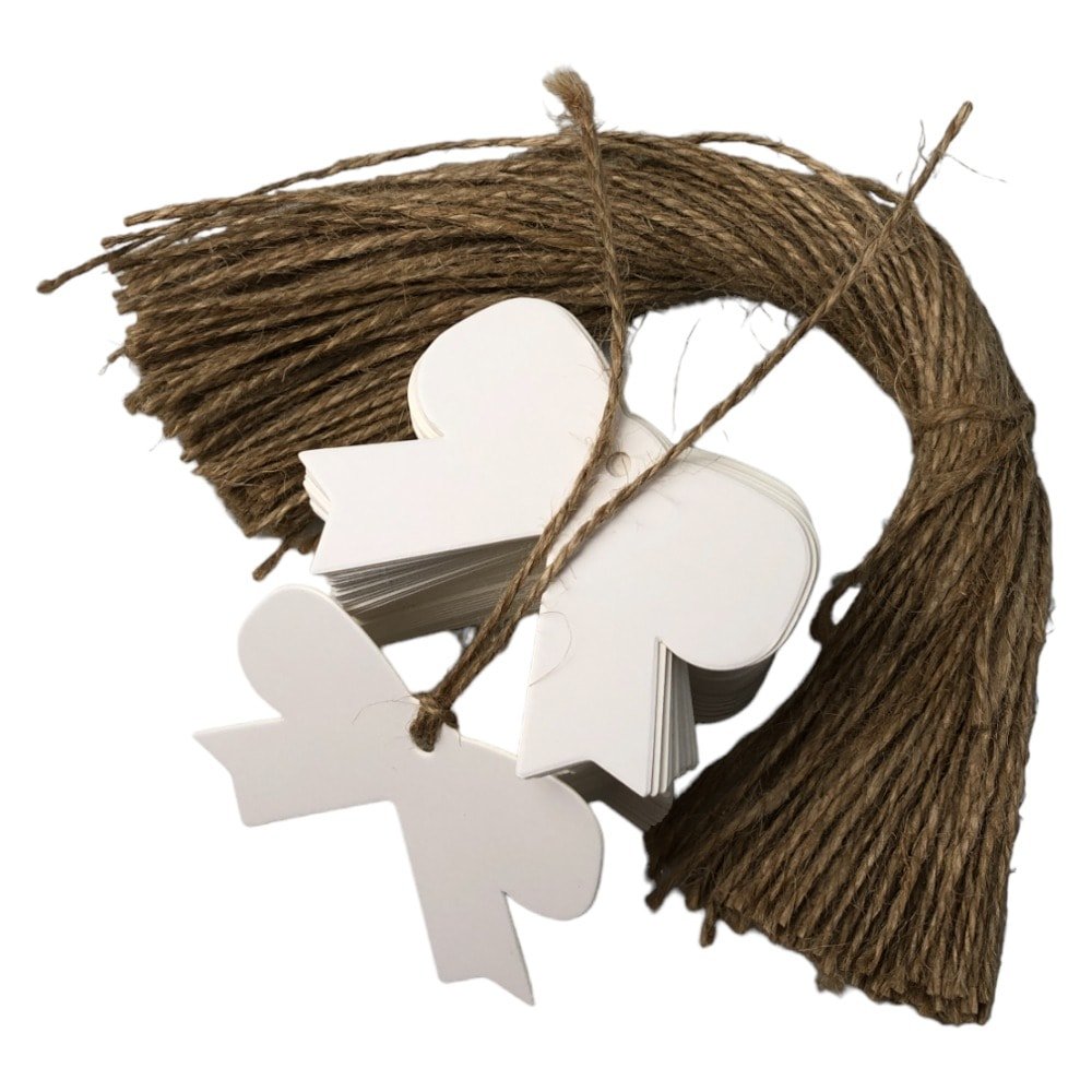 Bow-shaped paper labels 5x6.5cm - white (set of 100 pieces)