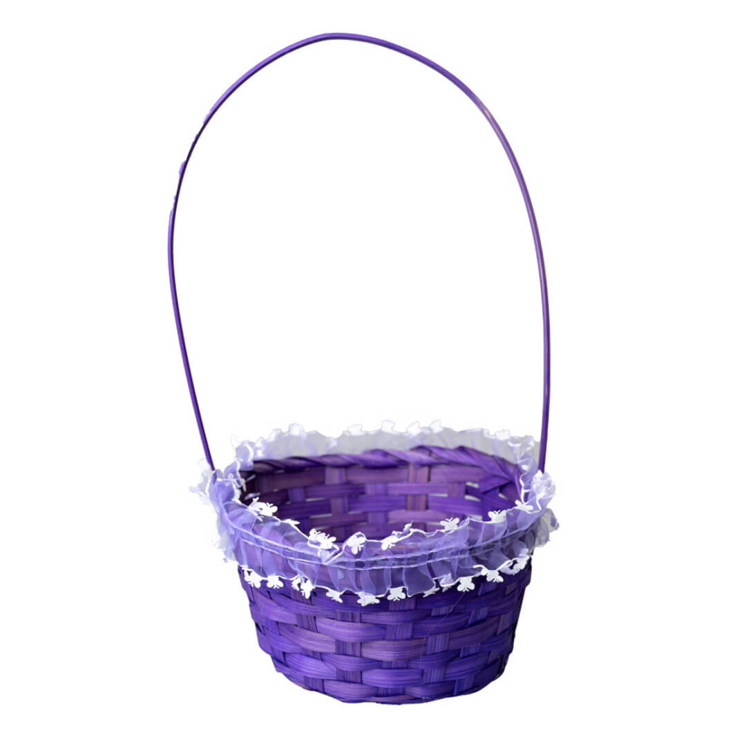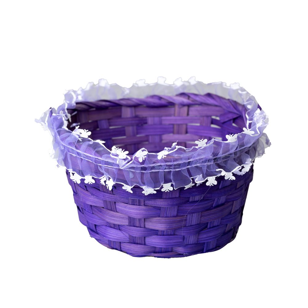Medium round rattan basket with handle and lace 18x10cm - purple