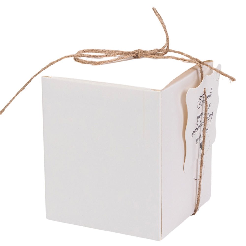 Small box with corrugated window and string – white, this small white box, with a simple and elegant design, is ideal for giving gifts or small gifts. The corrugated window adds an interesting visual element, and the rustic string complements the natural look of the box. The set includes 50 pieces, each measuring 10×8.5×8.5cm.