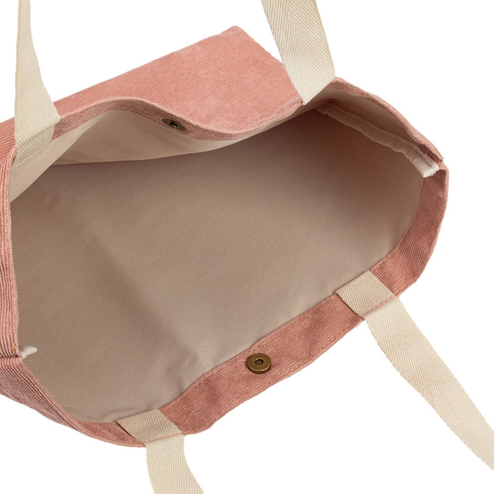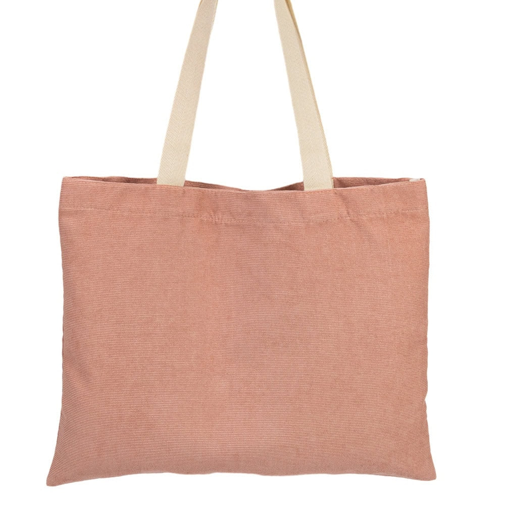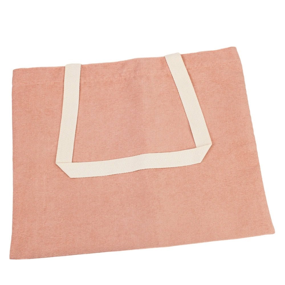 Striped bag with handle and clasp - pink is a medium-sized bag, perfect for shopping, the beach or work. It is made of high-quality striped velvet, which is soft to the touch and wear-resistant. The bag has a long and durable handle, which can be carried on the shoulder or in the hand. It also has a magnetic clasp that closes easily and securely.