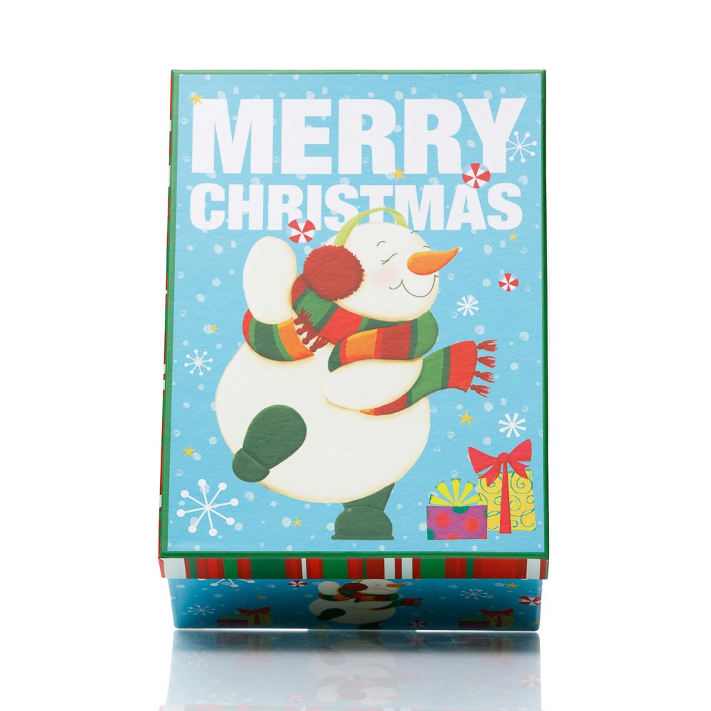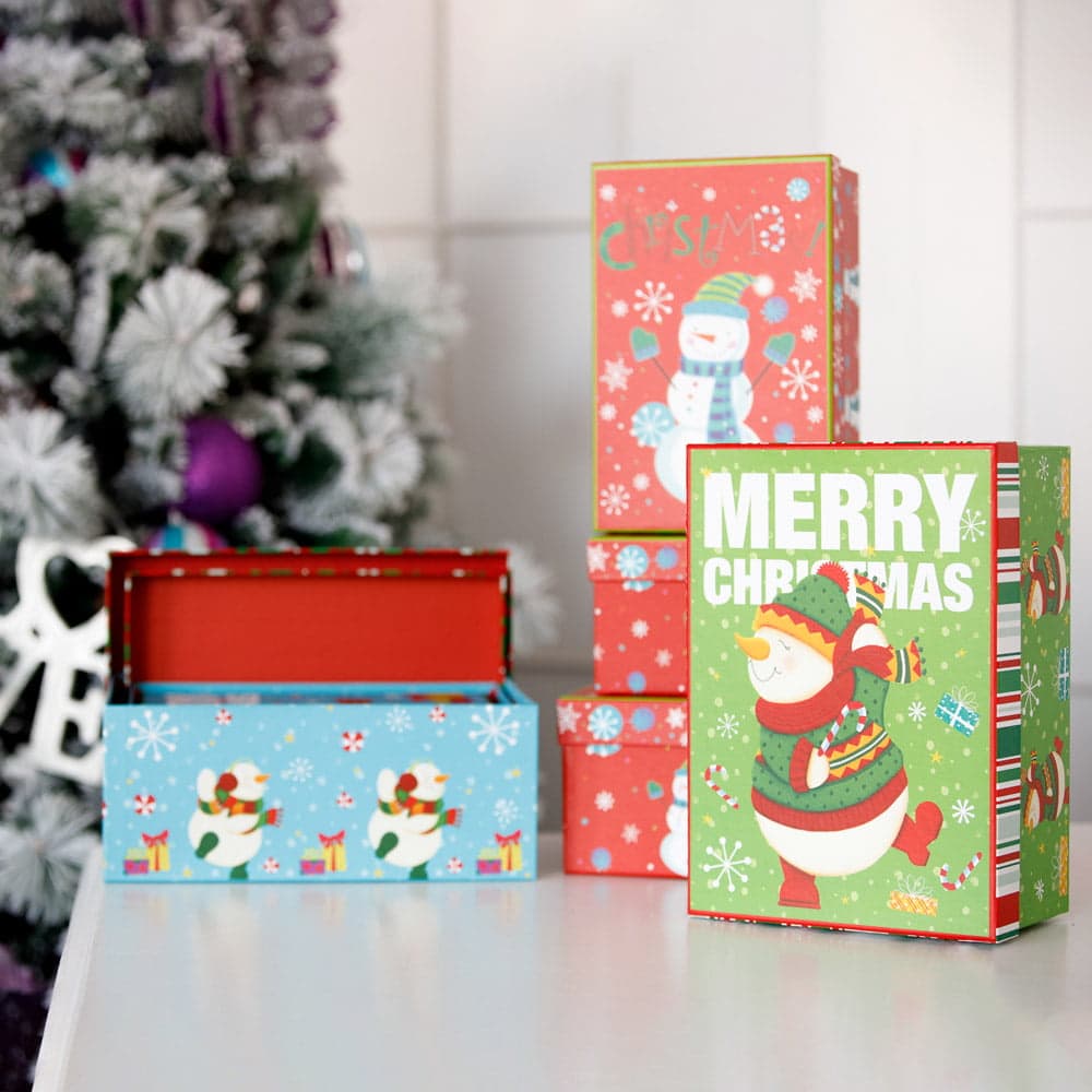 Set of 3 rectangular Christmas boxes - happy snowman pattern