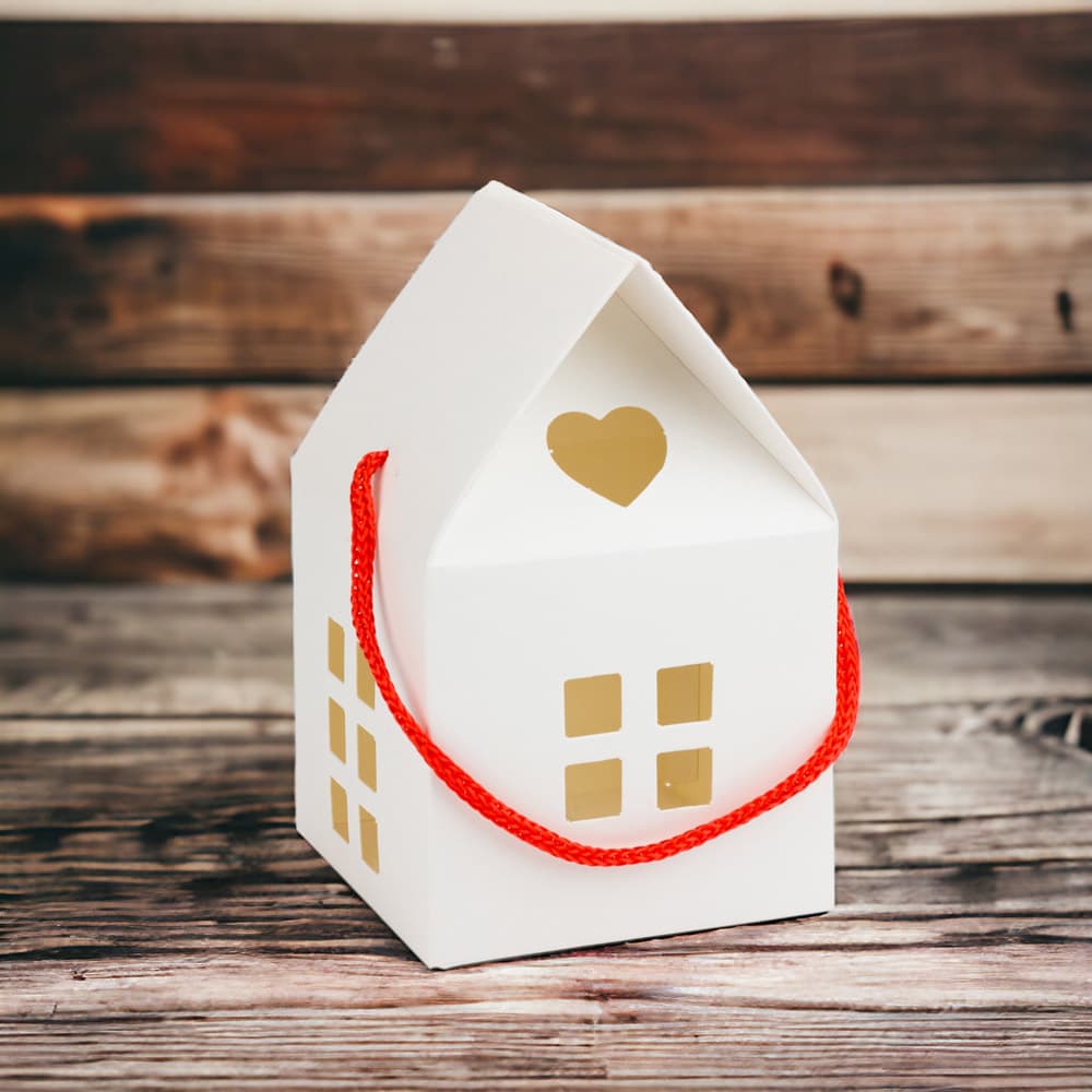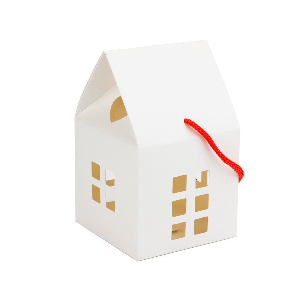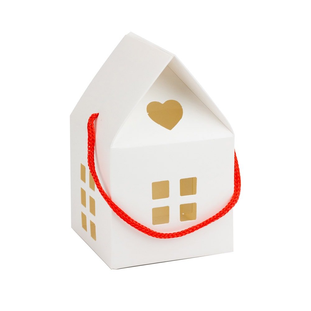 House-shaped box with handle - white (set of 50 pieces), brings a distinctive touch to your packaging.