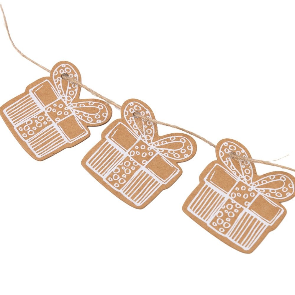 Christmas gift tags with string - kraft help you add a rustic and elegant touch to your Christmas gifts. The set includes both the tags and a natural jute string, perfect for attaching them to packages. The simple and elegant design, with traditional Christmas motifs, fits any packaging style.