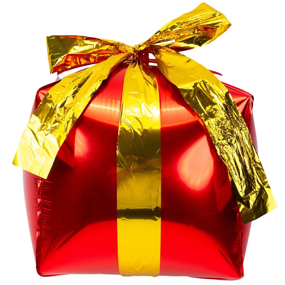 Add a touch of opulent elegance and festive spirit to your decor with this spectacular gift-shaped balloon. The timeless chromatic combination of metallic red and shimmering gold makes it a piece de resistance, perfect for creating a refined and memorable festive atmosphere.