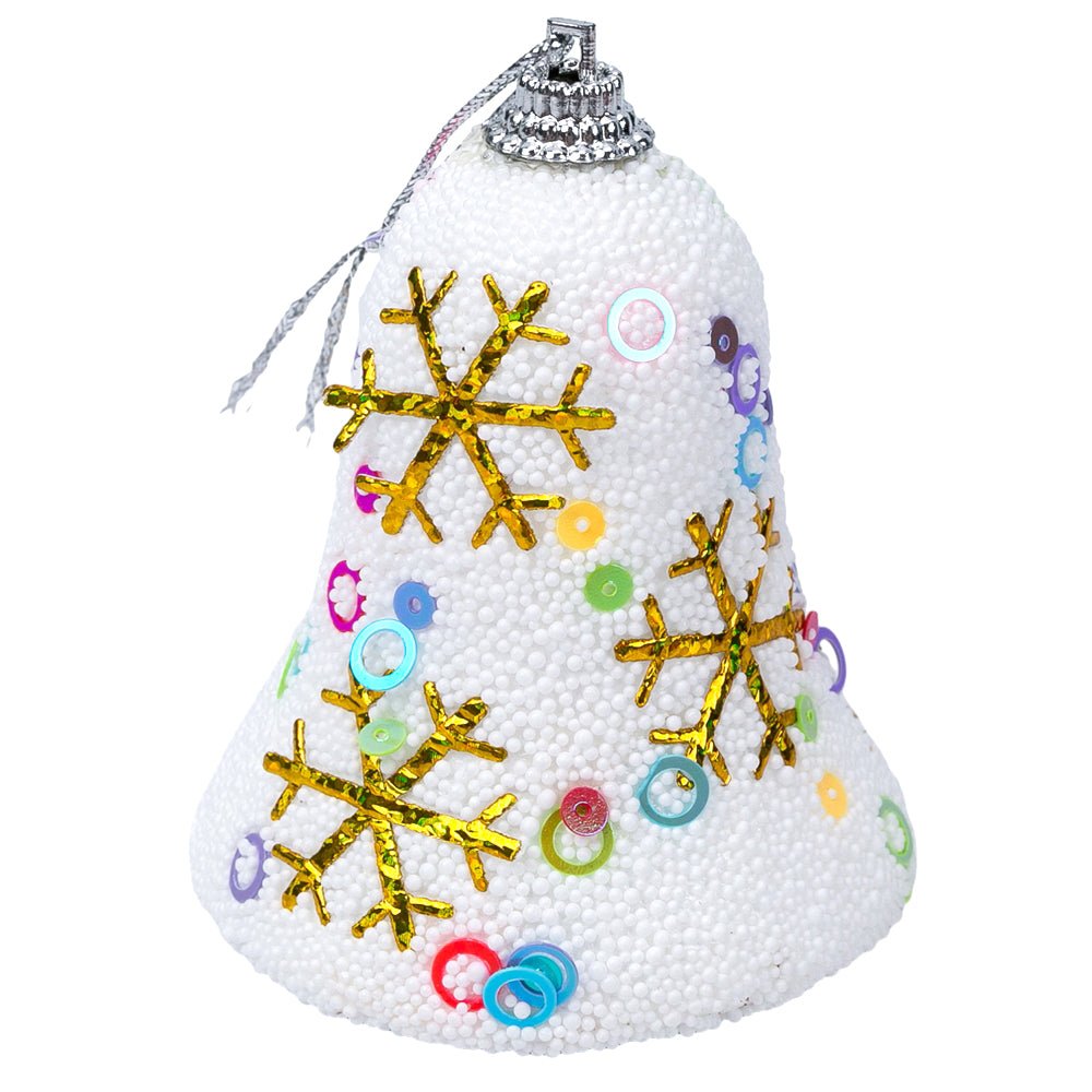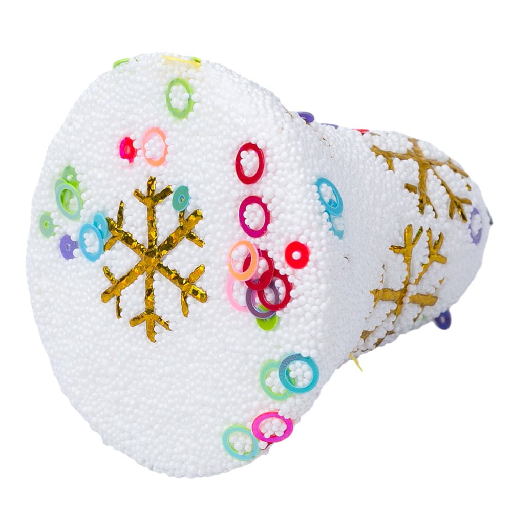 Add a burst of color and cheer to your tree with this unique decorative bell. Its playful design, combining the pure texture of snow with multi-colored sequins and shiny golden flakes, is perfect for creating a holiday decor full of life and optimism.