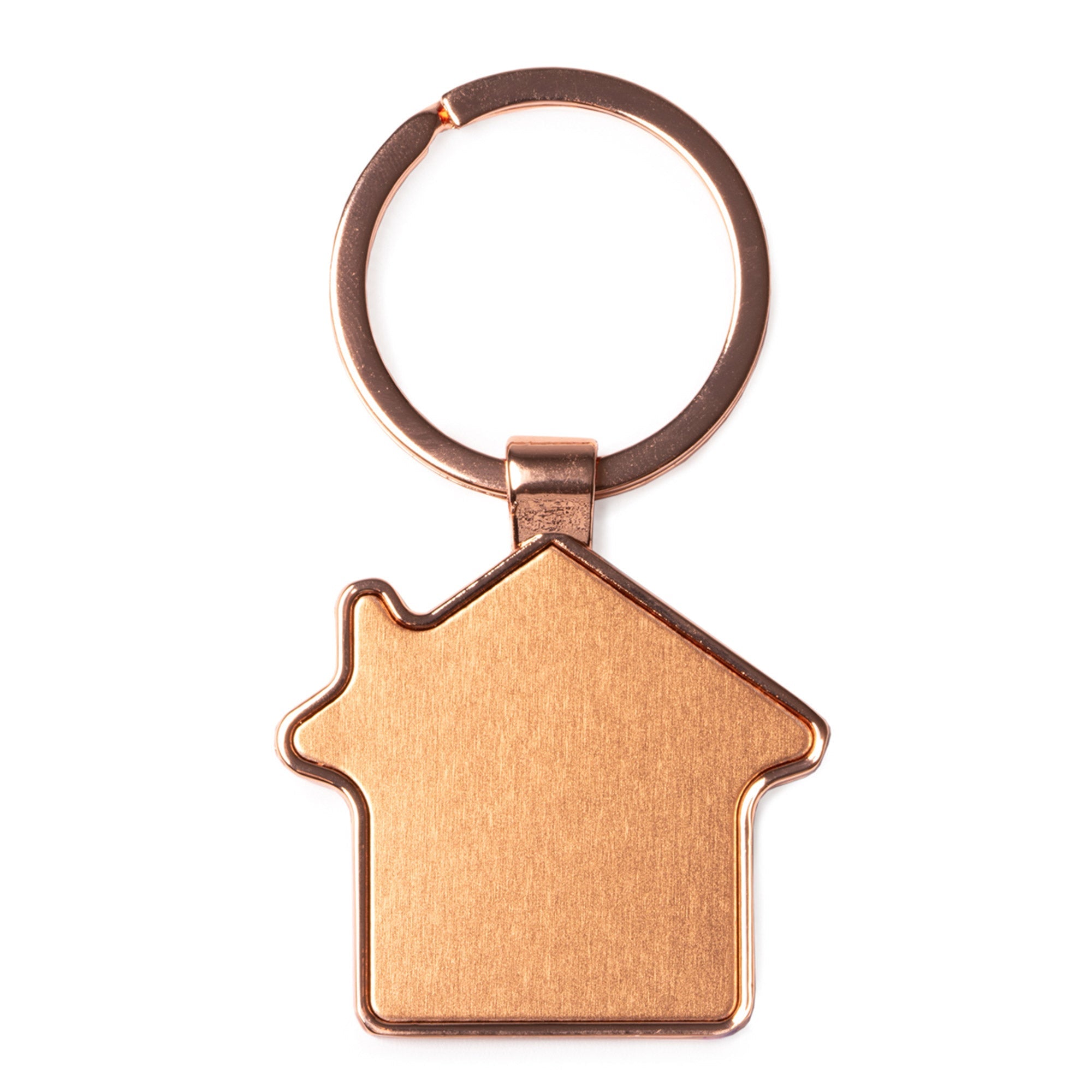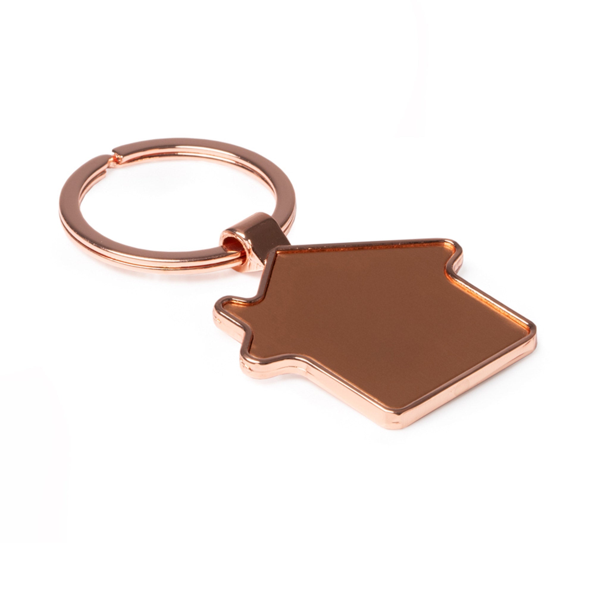 Breloc metalic din cupru, cu finisaj uniform și suprafață netedă, Construcția permite mai multe opțiuni de personalizare, fiind potrivit pentru cadouri, promoții sau utilizare zilnică.