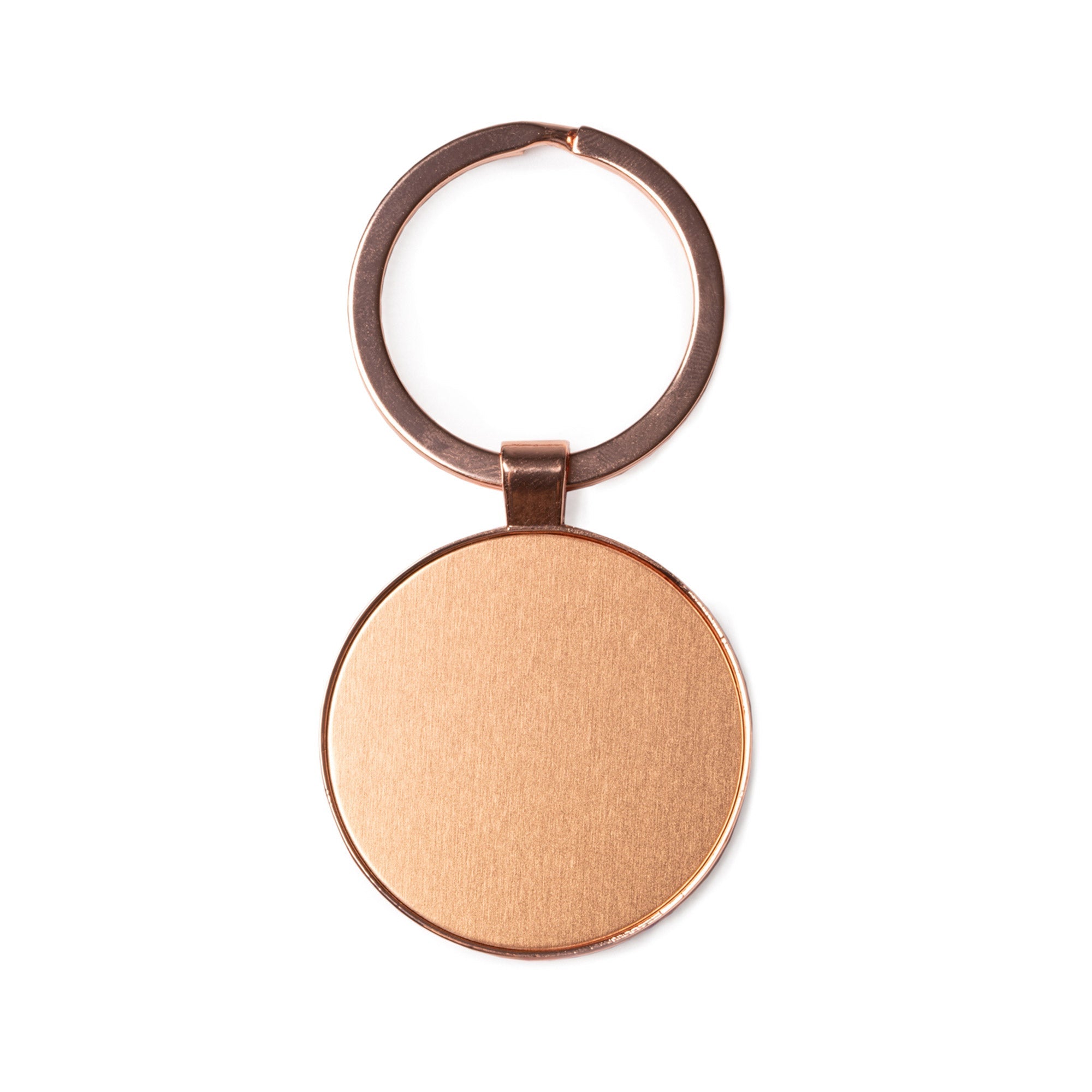 Breloc metalic din cupru, cu finisaj uniform și suprafață netedă, Construcția permite mai multe opțiuni de personalizare, fiind potrivit pentru cadouri, promoții sau utilizare zilnică.