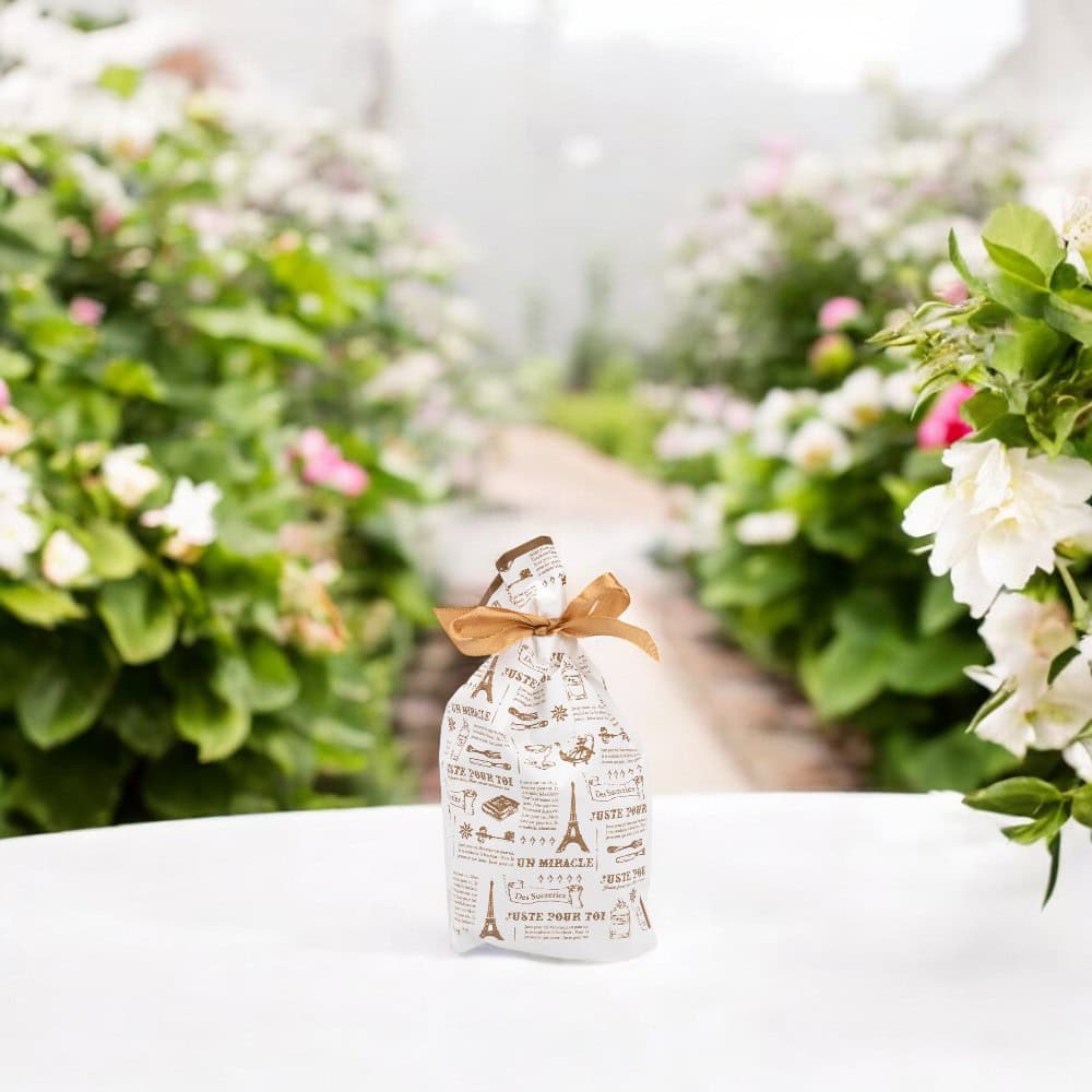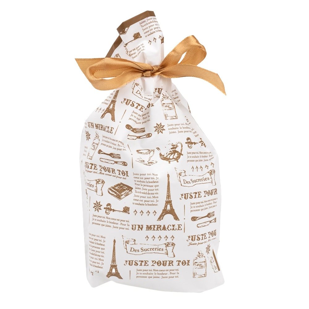 Travel pattern plastic bags with satin bow - gold, an elegant and versatile packaging, perfect for adding a touch of charm and nostalgia to your gifts. Inspired by the romantic atmosphere of travel, this pattern transports you to a world full of adventure and discovery.