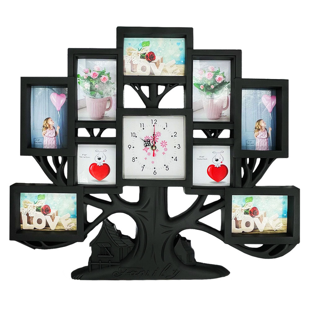 Photo frame clock collage black tree 9 pictures