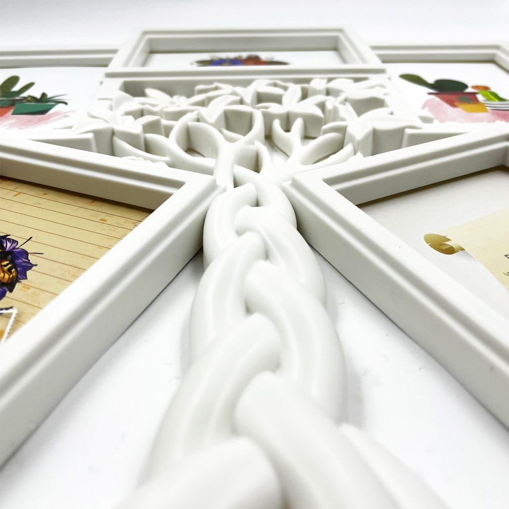 • Cardboard boxes can be reassembled to reinsert the frame into the box after it is personalized.